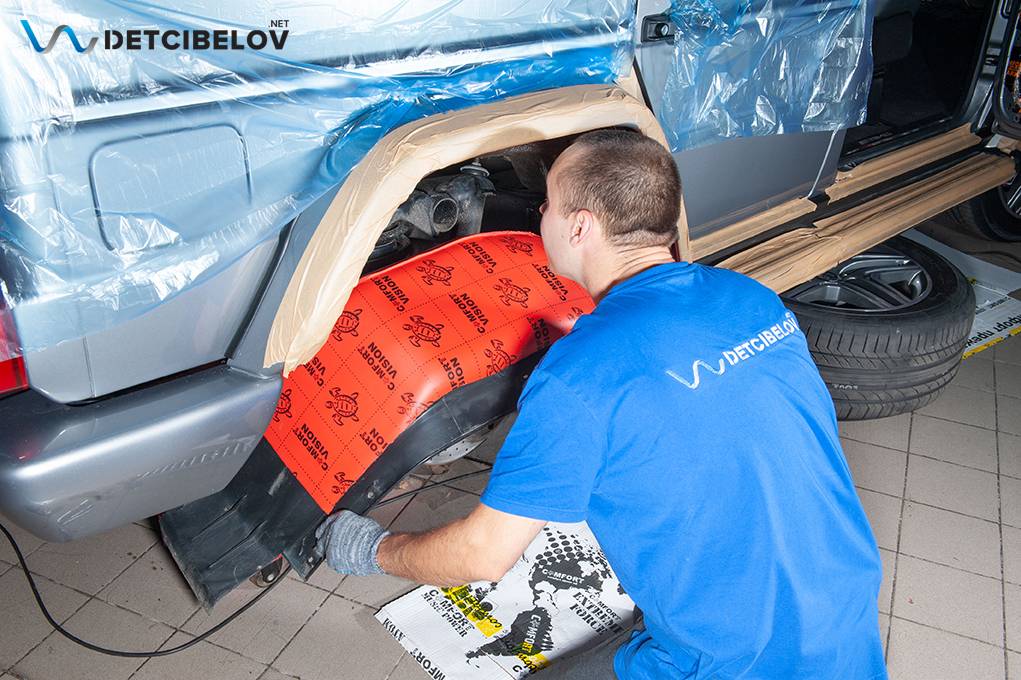 • Никаких компромиссов! Только топовые материалы последнего поколения от ТМ "Comfort mat" с максимальной эффективностью и максимальным количеством слоев. Также использование вибродемпфирующих материалов высокой жесткости с разогревом в печи и дополнительной напыляемой шумоизоляцией для колесных арок.