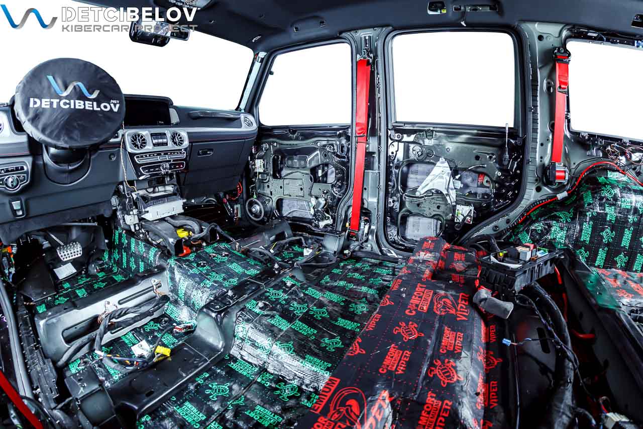 Сделаем тише Mercedes-Benz G-Класс (W463) в 6,4 раза за 16 часов с гарантией отсутствия скрипов и поломанных элементов салона