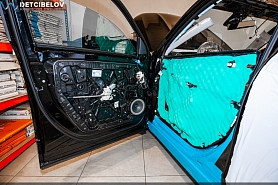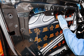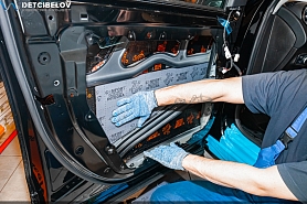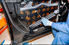 • Самая легкая шумоизоляция автомобиля от ведущих брендов. Она обеспечивает оптимальный результат при однослойной обработке кузова автомобиля. Материал обладает одновременно как шумо-, так и виброизоляционными свойствами, что позволяет укладывать материал в один слой, вместо двух, используемых при многослойной классической шумоизоляции автомобиля. Также мы дополнительно обрабатываем двери акустическим материалом для снижения скрипов и увеличения акустического комфорта.