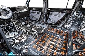 • Никаких компромиссов! Только топовые материалы последнего поколения от ТМ "Comfort mat" с максимальной эффективностью и максимальным количеством слоев. Также использование вибродемпфирующих материалов высокой жесткости с разогревом в печи и дополнительной напыляемой шумоизоляцией для колесных арок.