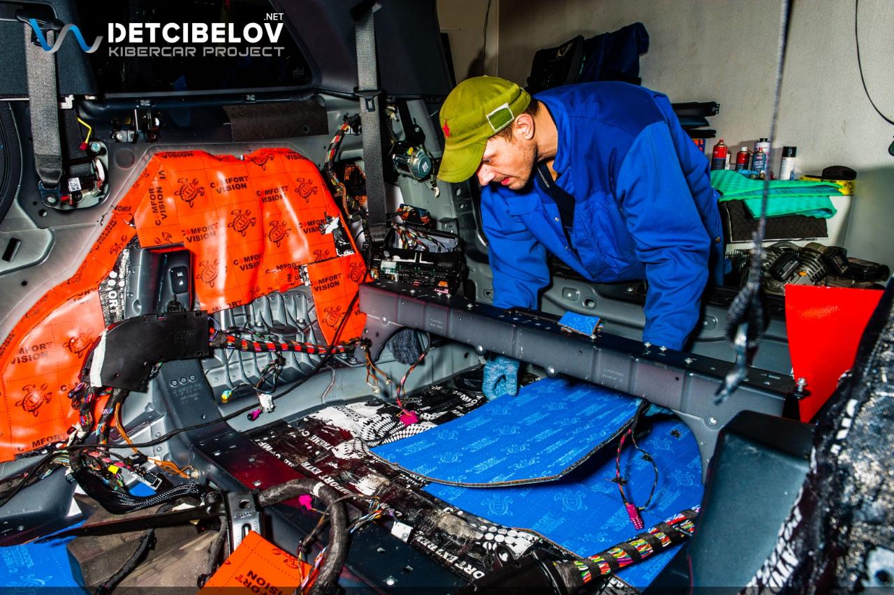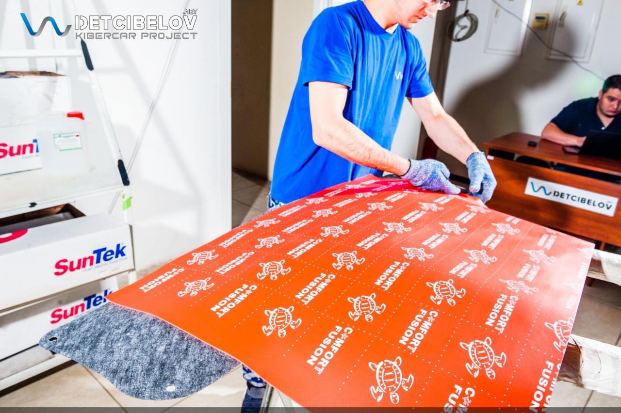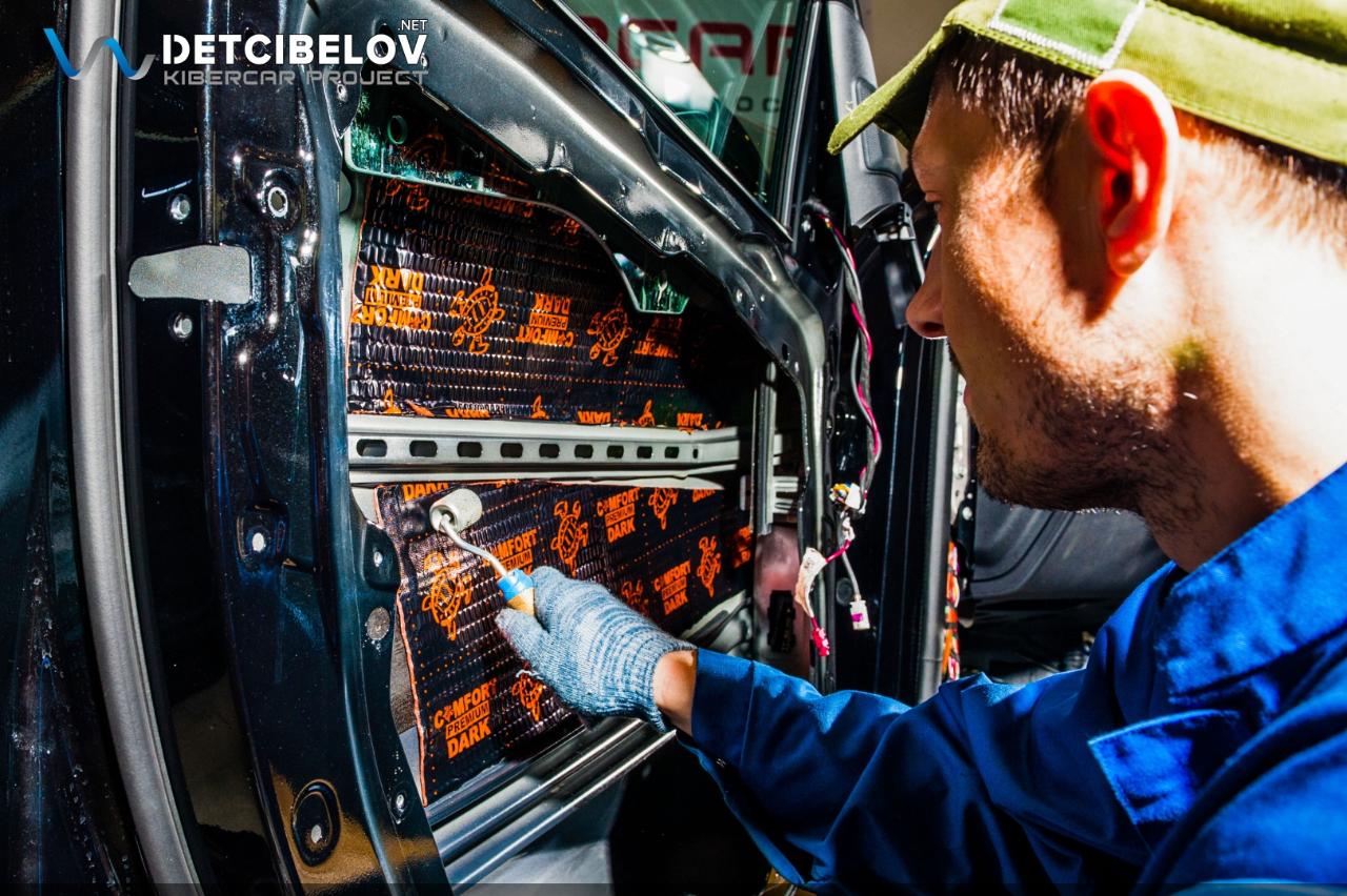 • Никаких компромиссов! Только топовые материалы последнего поколения от ТМ "Comfort mat" с максимальной эффективностью и максимальным количеством слоев. Также использование вибродемпфирующих материалов высокой жесткости с разогревом в печи и дополнительной напыляемой шумоизоляцией для колесных арок.