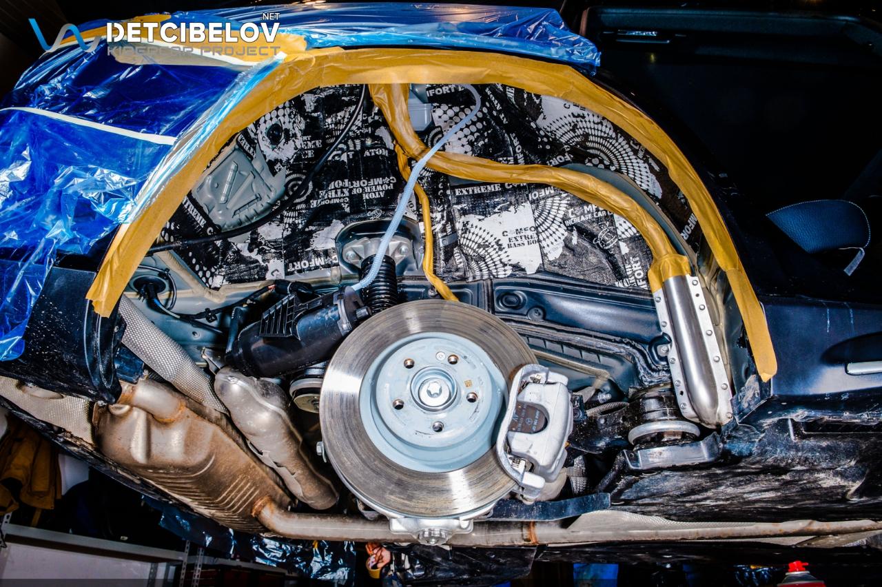 Шумоизоляция торпедо и колесных арок снаружи - за доплату.