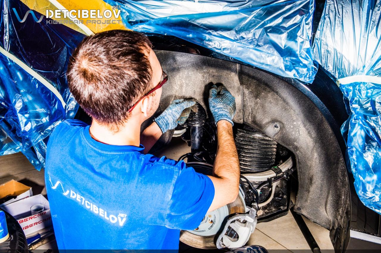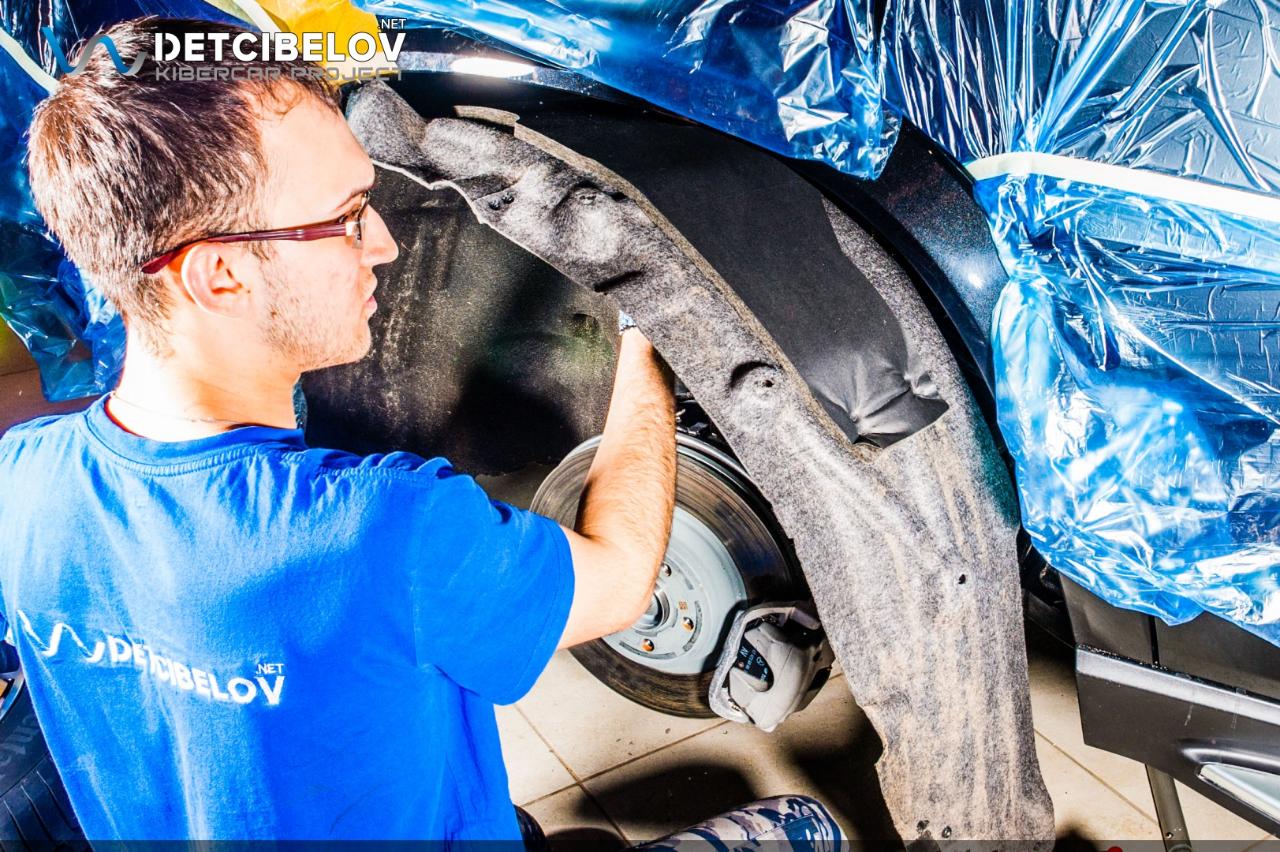 Шумоизоляция торпедо и колесных арок снаружи – за доплату.
