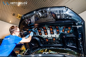 Заметив недостаток качественных услуг по шумоизоляции на рынке, КИБЕРКАР создала отдельное подразделение «Децибелов.нет», специализирующееся именно на этом. Мастера нашей компании обладают не менее чем пятилетним опытом работы, преимущественно с автомобилями премиальных марок. Они используют высококачественные вибро- и шумопоглощающие материалы от компаний ТМ "Comfort mat" и "Стандартпласт", получая при этом инженерную поддержку от акустиков этих производителей. Таким образом, «Децибелов.нет» обеспечивает клиентам высокопрофессиональный и специализированный подход к шумоизоляции автомобилей.