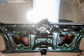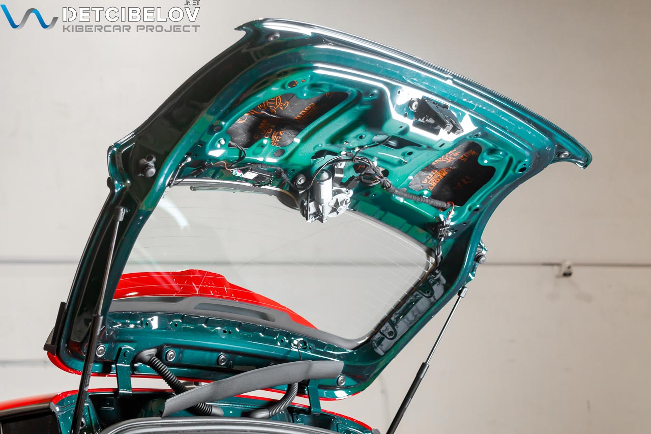 На крышку багажника демпферно наносим Comfort mat Cobra – тонкий и легкий виброизолятор с высоким КМП. Он будет гасить вибрации на этом участке.
