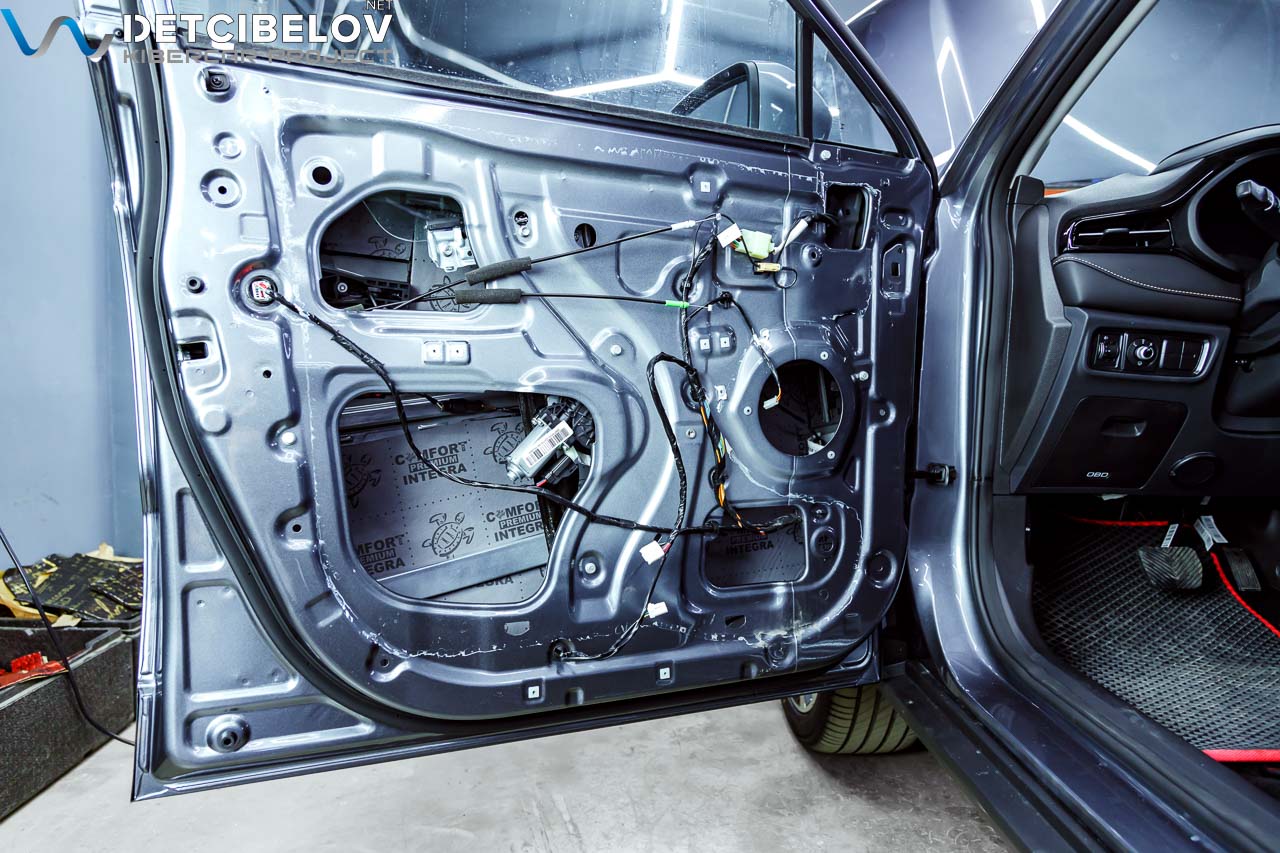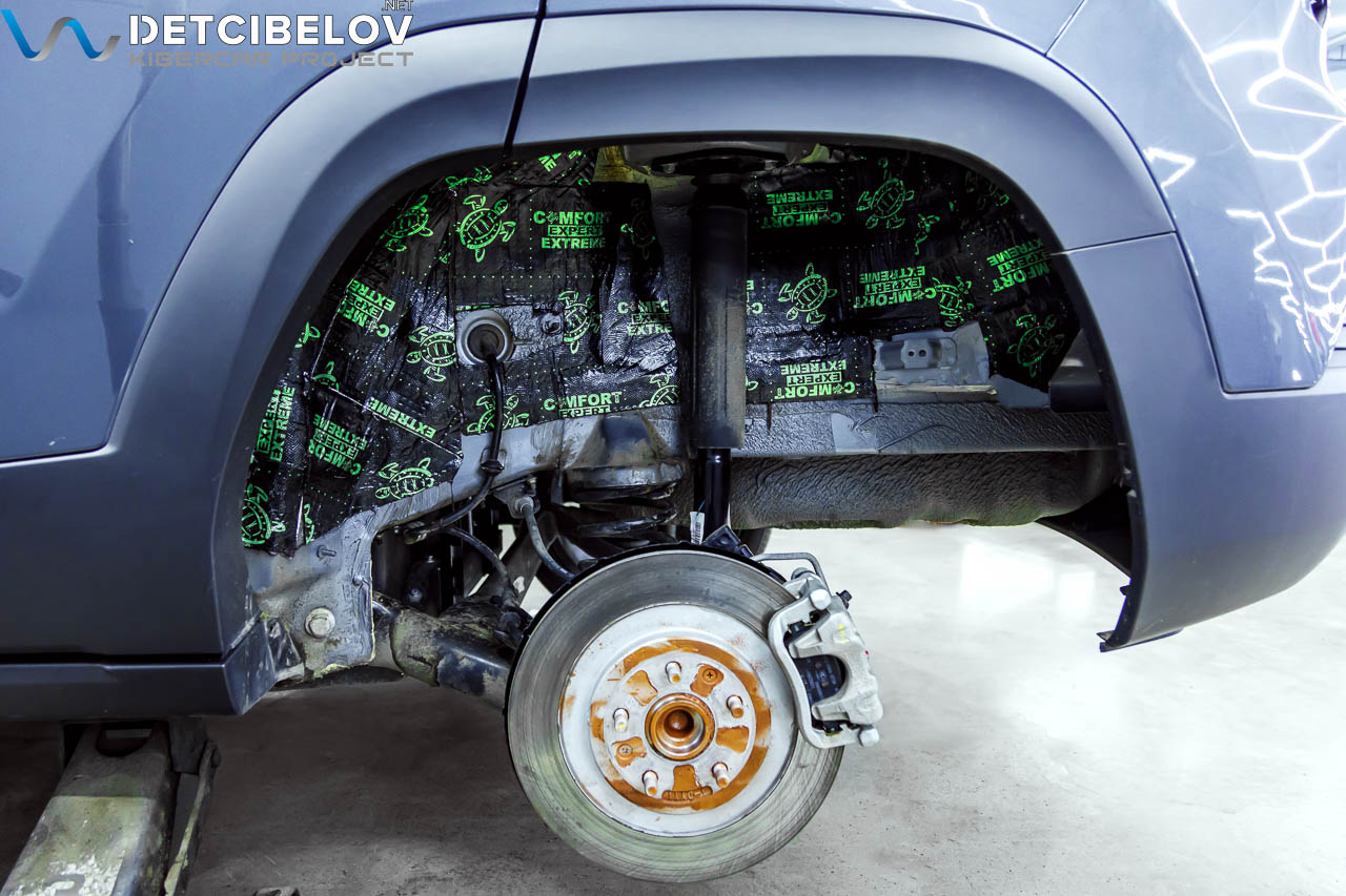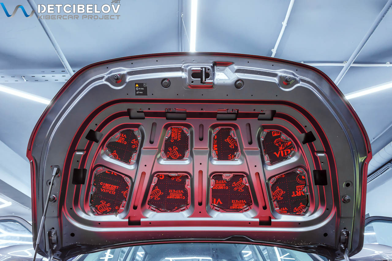 • Никаких компромиссов! Только топовые материалы последнего поколения от ТМ "Comfort mat" с максимальной эффективностью и максимальным количеством слоев. Также использование вибродемпфирующих материалов высокой жесткости с разогревом в печи и дополнительной напыляемой шумоизоляцией для колесных арок.
