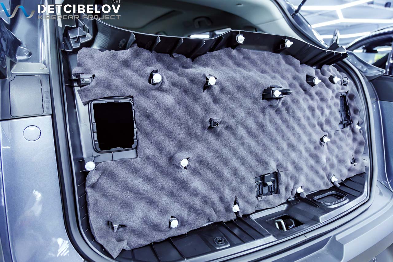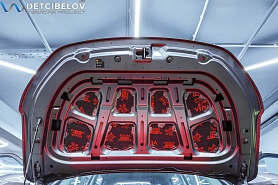 Обработка крышки багажника тоже будет комбинированной. В качестве нижнего слоя наносим Comfort mat Viper (3 мм), для шумопоглощения – Comfort mat Soft Wave Expert (15 мм).