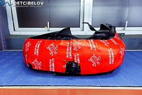 Вторым слоем укладываем материал Comfort mat Fusion Red (3 мм), полимер со звукоизолирующими и шумопоглощающими свойствами. После этого остается в обратном порядке собрать салон, удостовериться в работоспособности всех переключателей и целостности компонентов.
