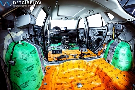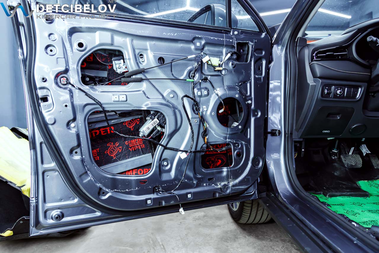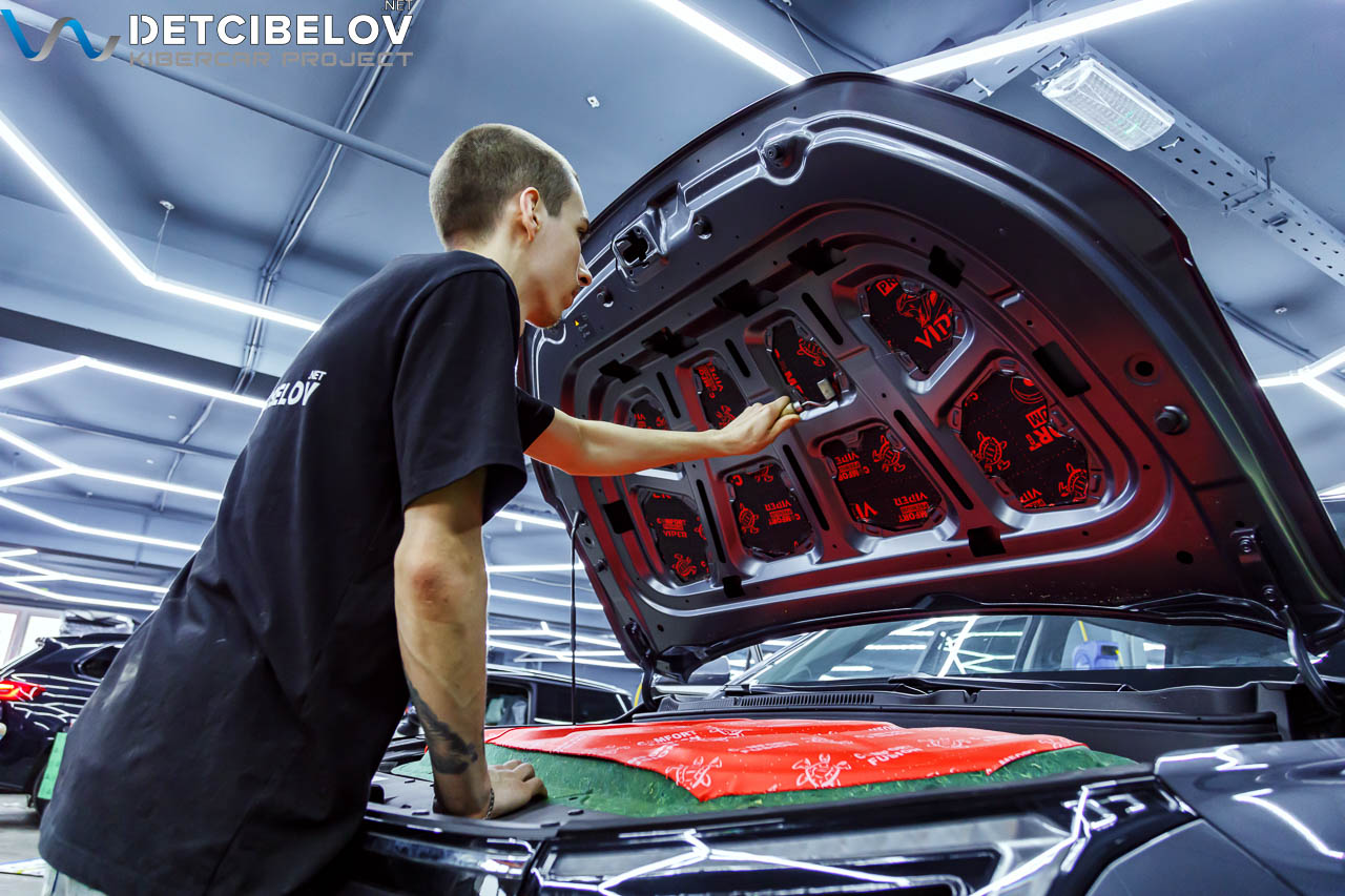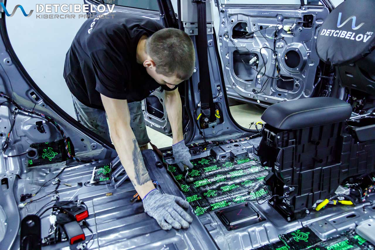 • Никаких компромиссов! Только топовые материалы последнего поколения от ТМ "Comfort mat" с максимальной эффективностью и максимальным количеством слоев. Также использование вибродемпфирующих материалов высокой жесткости с разогревом в печи и дополнительной напыляемой шумоизоляцией для колесных арок.