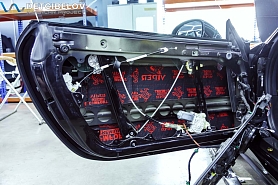 • Самая легкая шумоизоляция автомобиля от ведущих брендов. Она обеспечивает оптимальный результат при однослойной обработке кузова автомобиля. Материал обладает одновременно как шумо-, так и виброизоляционными свойствами, что позволяет укладывать материал в один слой, вместо двух, используемых при многослойной классической шумоизоляции автомобиля. Также мы дополнительно обрабатываем двери акустическим материалом для снижения скрипов и увеличения акустического комфорта.