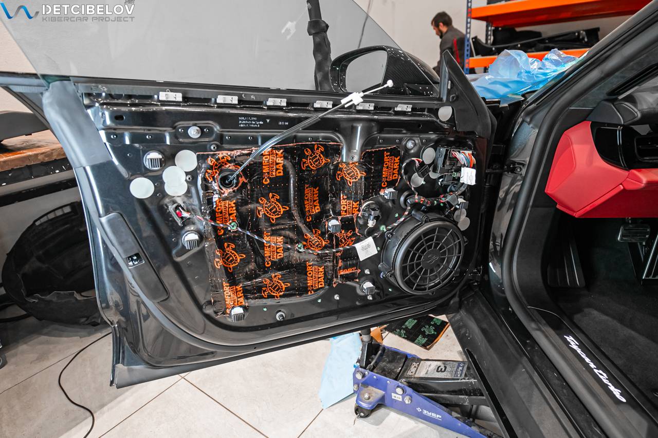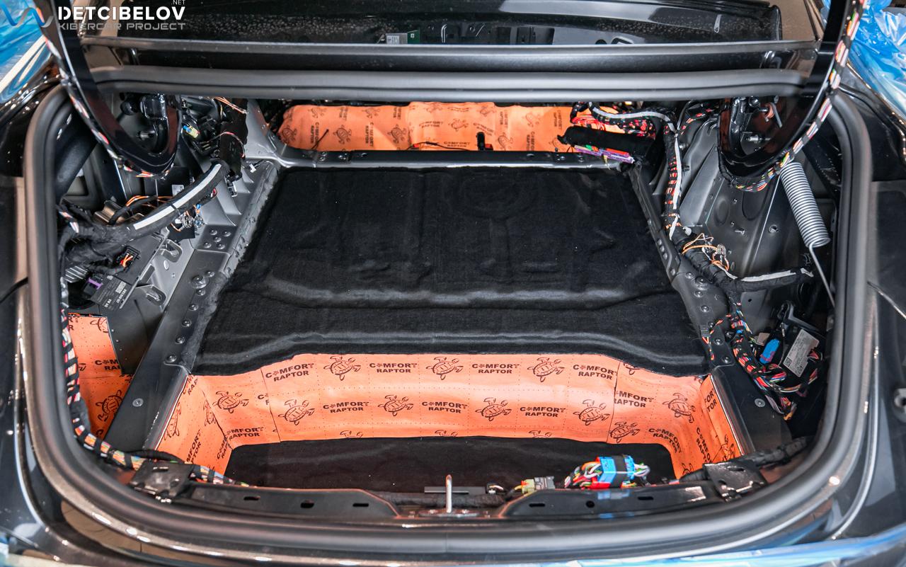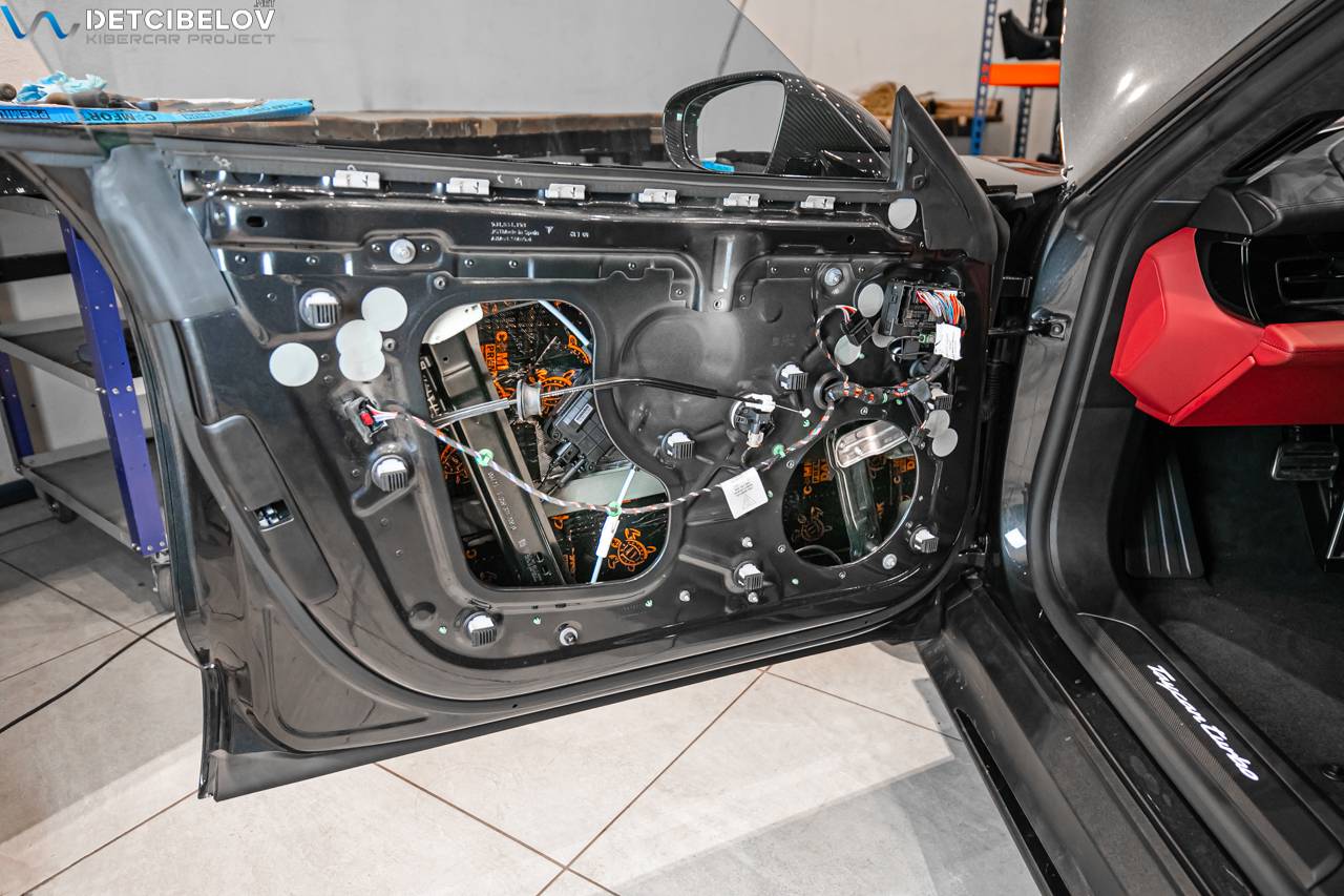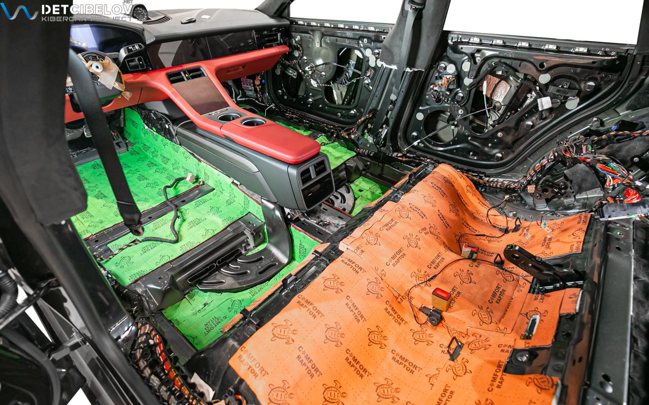 Процесс шумоизоляции салона Porsche Taycan