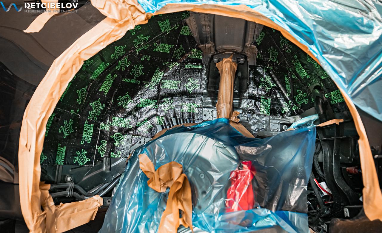 Шумоизоляция торпедо и колесных арок снаружи – за доплату.
