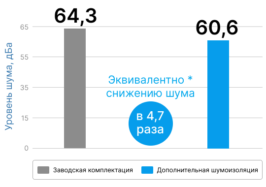 В результате в салоне ощутимо снизился уровень дорожного гула и шума от покрышек.