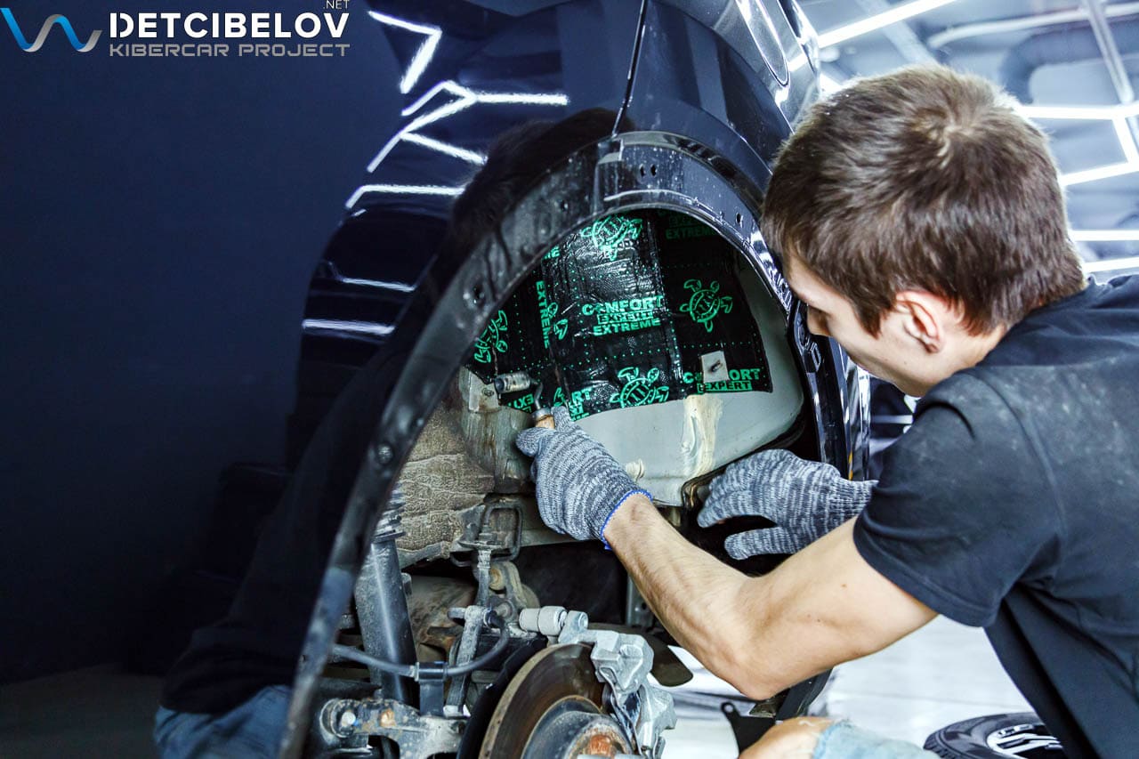 • Никаких компромиссов! Только топовые материалы последнего поколения от ТМ "Comfort mat" с максимальной эффективностью и максимальным количеством слоев. Также использование вибродемпфирующих материалов высокой жесткости с разогревом в печи и дополнительной напыляемой шумоизоляцией для колесных арок.