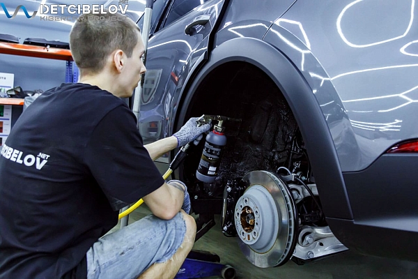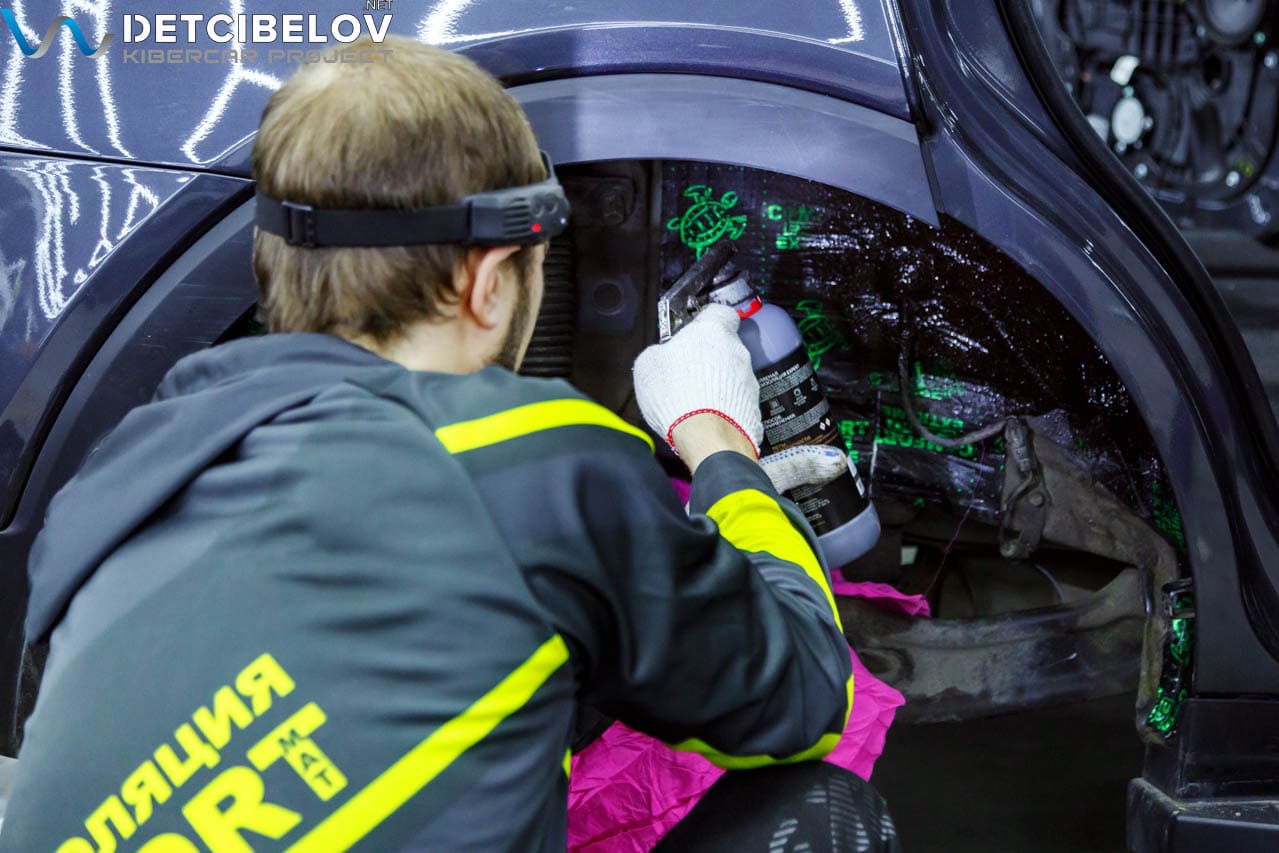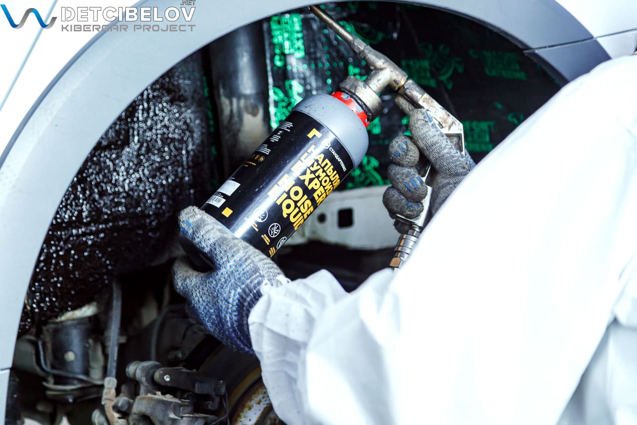 Шумоизоляция торпедо и колесных арок снаружи – за доплату.