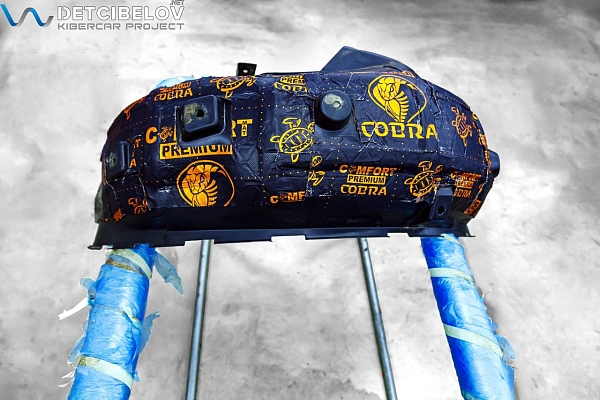 Шумоизоляция пластиковых подкрылков. Если в вашем автомобиле установлены пластиковые подкрылки, их шумоизоляция также позволит значительно уменьшить шум, издаваемый шинами. Наносим на внутреннюю сторону подкрылка облегченный вибродемпфер Comfort mat Cobra.