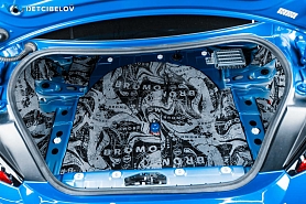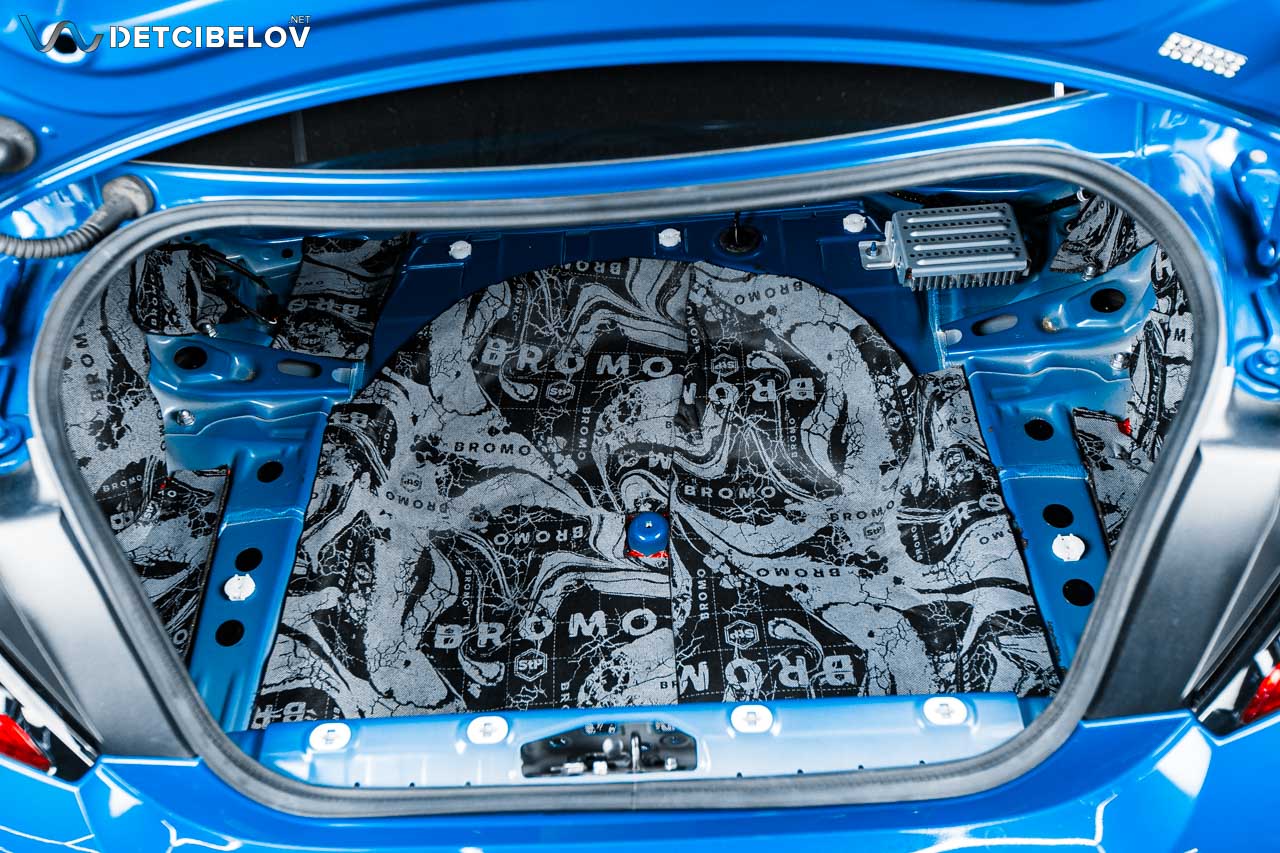 На крышку багажника мы демпферно нанесли Aerocell QP Genio (4 мм), а на пластиковую панель наклеили StP Biplast Premium (15 мм) с увеличенным коэффициентом шумопоглощения.