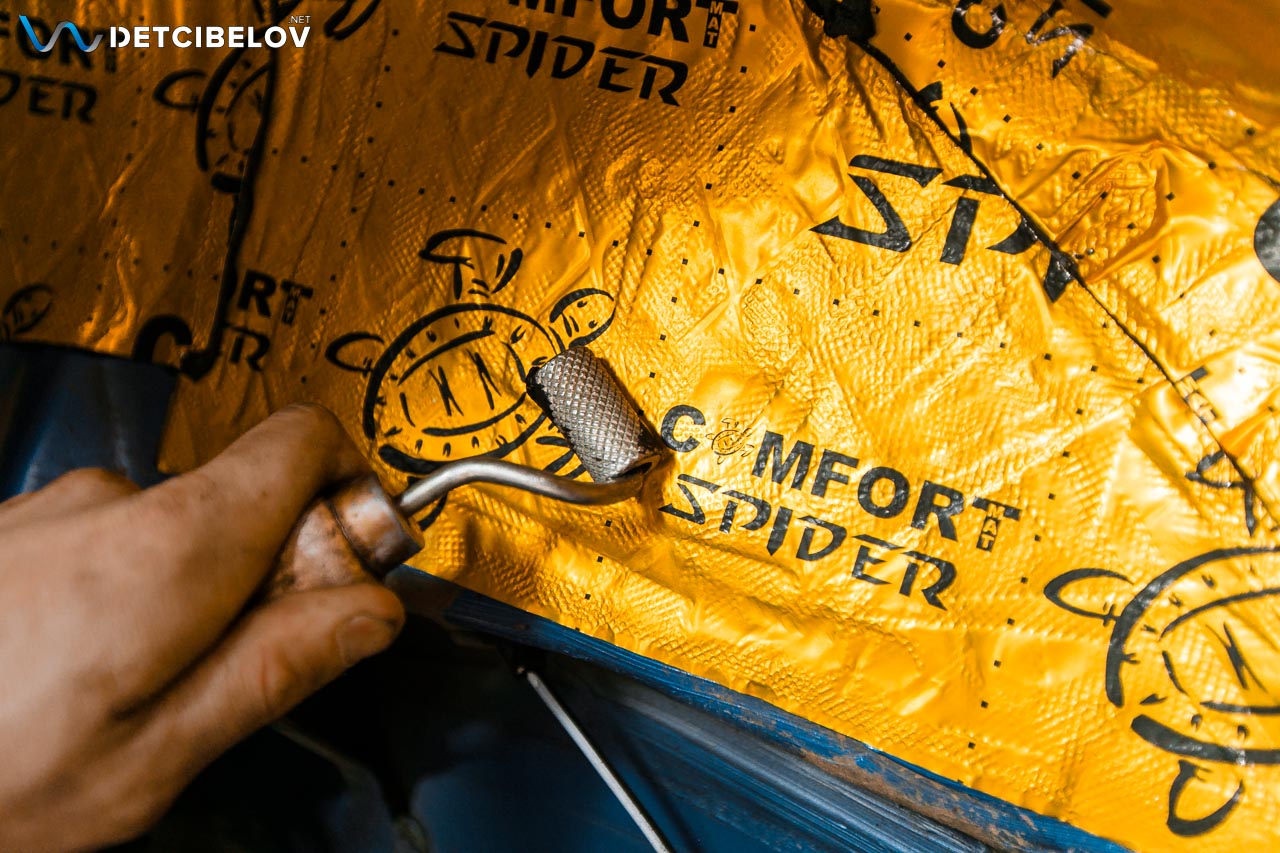Первым слоем наносим Comfort mat Spider (3.5 vv) – cовременный виброизоляционный материал, предназначенный для эффективного снижения уровня шума и вибраций в автомобиле.