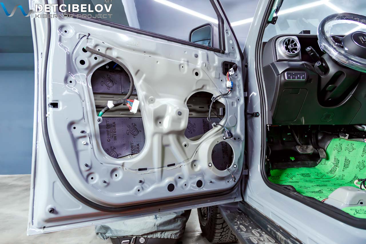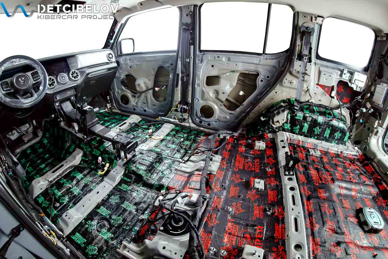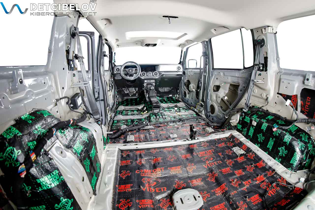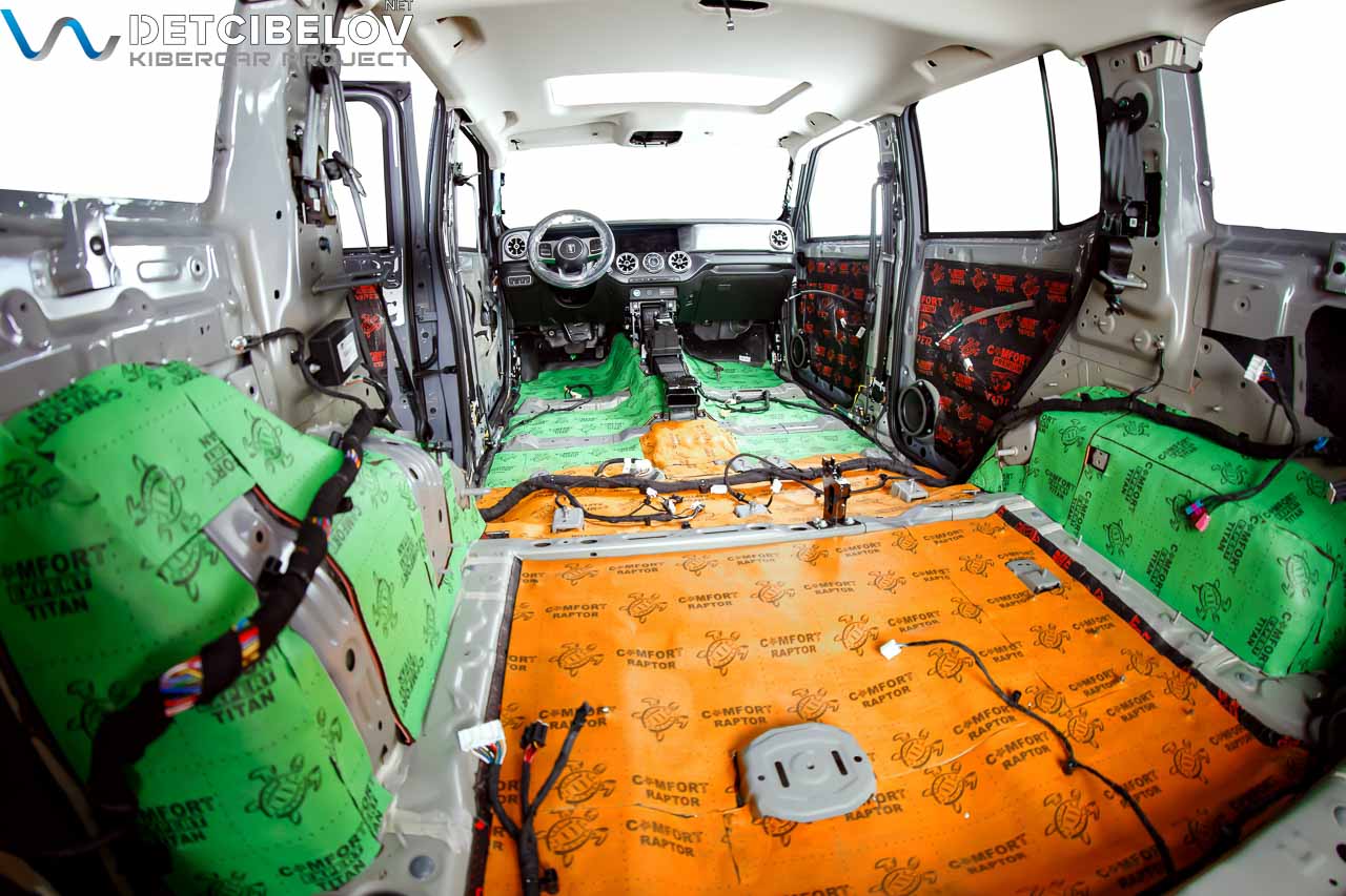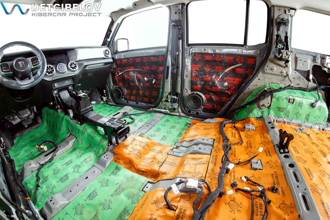 • Никаких компромиссов! Только топовые материалы последнего поколения от ТМ "Comfort mat" с максимальной эффективностью и максимальным количеством слоев. Также использование вибродемпфирующих материалов высокой жесткости с разогревом в печи и дополнительной напыляемой шумоизоляцией для колесных арок.