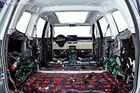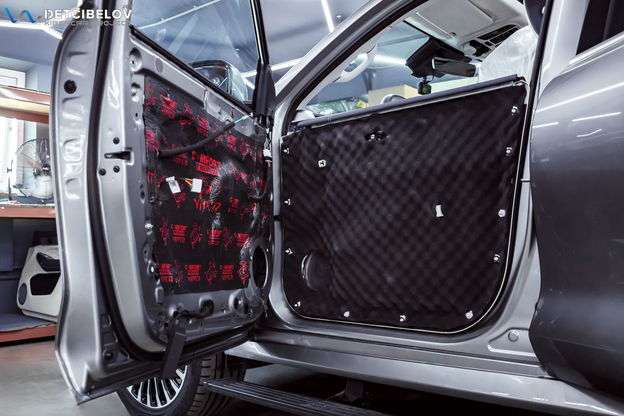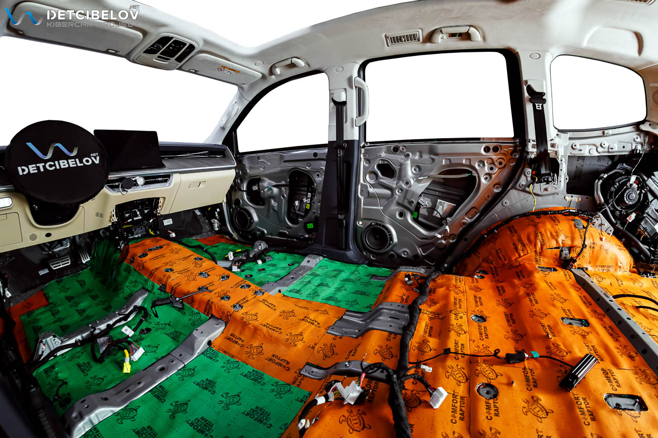 • Никаких компромиссов! Только топовые материалы последнего поколения от ТМ "Comfort mat" с максимальной эффективностью и максимальным количеством слоев. Также использование вибродемпфирующих материалов высокой жесткости с разогревом в печи и дополнительной напыляемой шумоизоляцией для колесных арок.