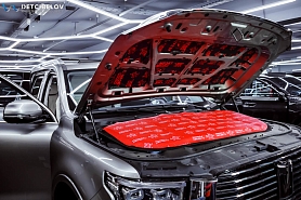 После шумоизоляции пола и зоны багажника переходим к работе над капотом и крышкой багажника.