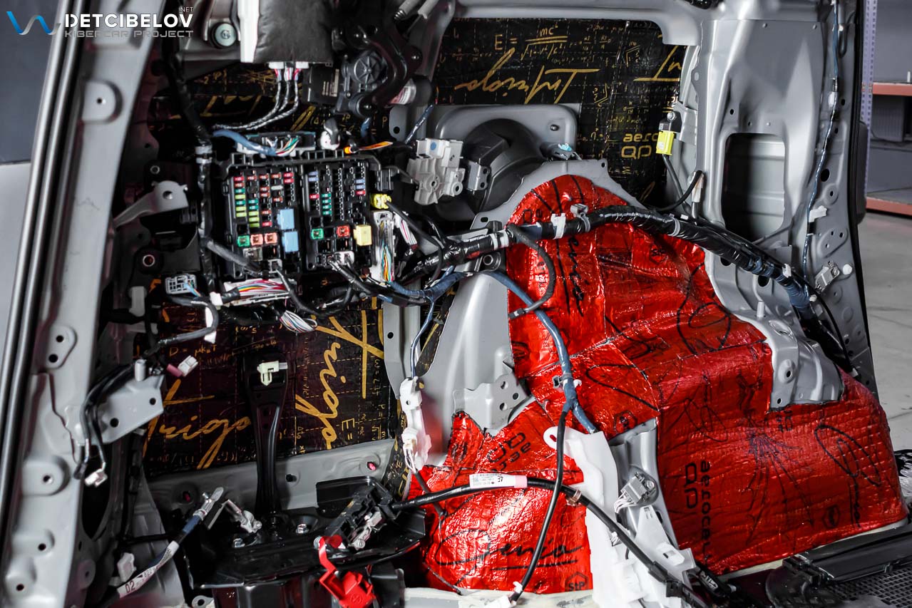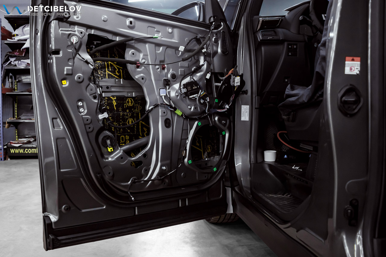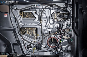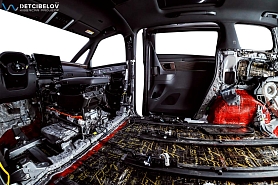 • Никаких компромиссов! Только топовые материалы последнего поколения от ТМ "Comfort mat" с максимальной эффективностью и максимальным количеством слоев. Также использование вибродемпфирующих материалов высокой жесткости с разогревом в печи и дополнительной напыляемой шумоизоляцией для колесных арок.