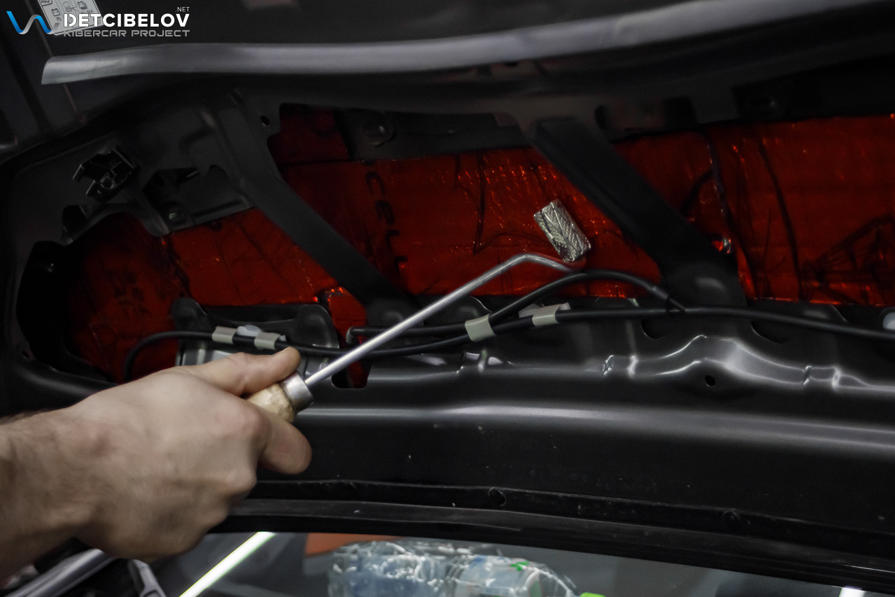 Шумоизоляция торпедо и колесных арок снаружи - за доплату.