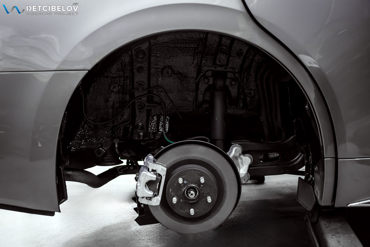 Шумоизоляция торпедо и колесных арок снаружи – за доплату.
