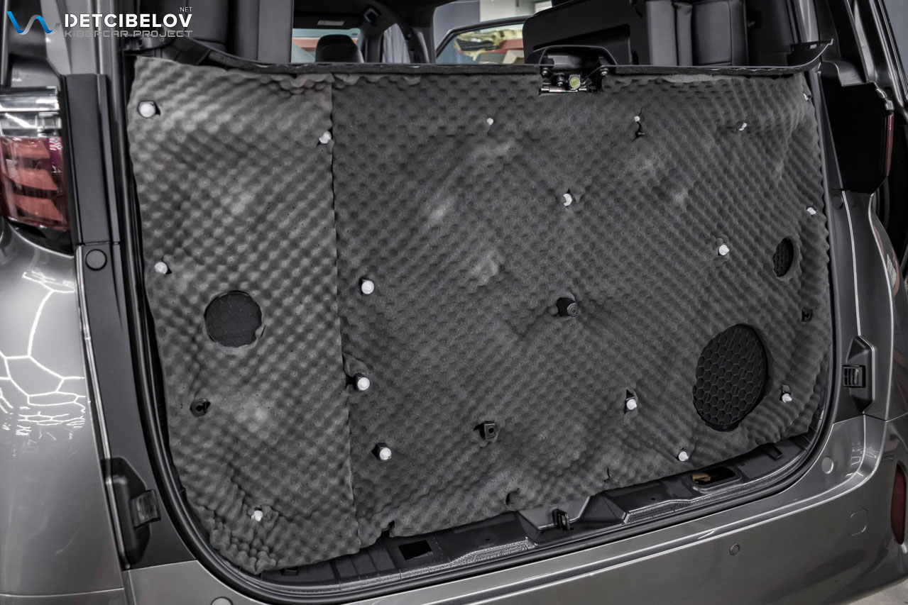 На крышку багажника мы демпферно нанесли Aerocell QP Genio (4 мм), а на пластиковую панель наклеили StP Biplast Premium (15 мм) с увеличенным коэффициентом шумопоглощения.