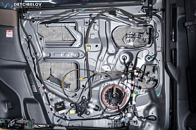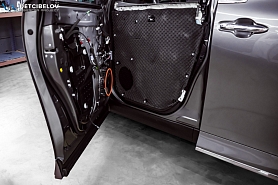 • Самая легкая шумоизоляция автомобиля от ведущих брендов. Она обеспечивает оптимальный результат при однослойной обработке кузова автомобиля. Материал обладает одновременно как шумо-, так и виброизоляционными свойствами, что позволяет укладывать материал в один слой, вместо двух, используемых при многослойной классической шумоизоляции автомобиля. Также мы дополнительно обрабатываем двери акустическим материалом для снижения скрипов и увеличения акустического комфорта.