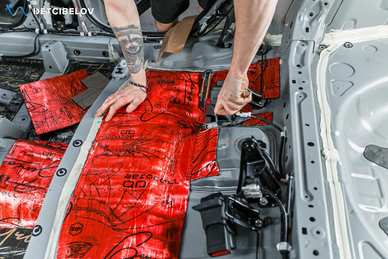 • Шумо-виброизоляция с максимальным уровнем подавления звука, абсолютный максимум. Мы полностью разбираем автомобиль до металла, не оставляя ни единого пластикового элемента или доп.оборудования. Весь металл обезжиривается и плотно укатывается топовыми материалами последнего поколения Aerocell от бренда STP. Обязательно заполняются все пустоты, наносится звукопоглощающая мастика методом распыления и лента антискрип на все зоны риска.
