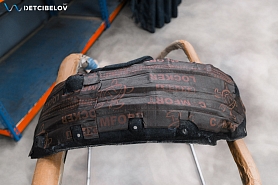 Финальным этапом шумоизоляции будет шумоизоляция колесных арок. Это позволит нам существенно усилить эффект снижения шума, издаваемого резиной автомобиля. Сначала снимаем 4 подкрылка, обезжириваем их поверхность и наносим следующие слои.