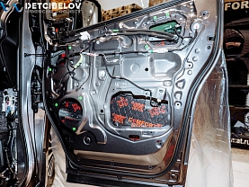• Самая легкая шумоизоляция автомобиля от ведущих брендов. Она обеспечивает оптимальный результат при однослойной обработке кузова автомобиля. Материал обладает одновременно как шумо-, так и виброизоляционными свойствами, что позволяет укладывать материал в один слой, вместо двух, используемых при многослойной классической шумоизоляции автомобиля. Также мы дополнительно обрабатываем двери акустическим материалом для снижения скрипов и увеличения акустического комфорта.