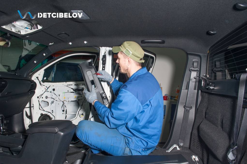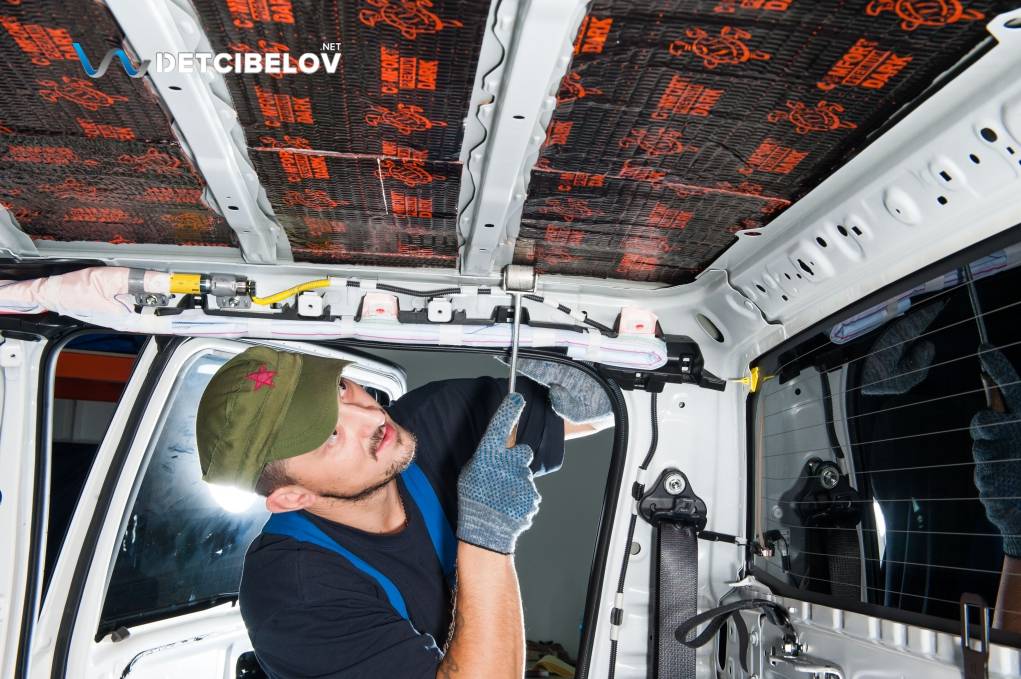 Убираем все лишнее из салона: ковры, обшивку, сиденья, дополнительное оборудование. Автомобиль должен быть максимально пустым, чтобы ничто не мешало монтажу материалов.