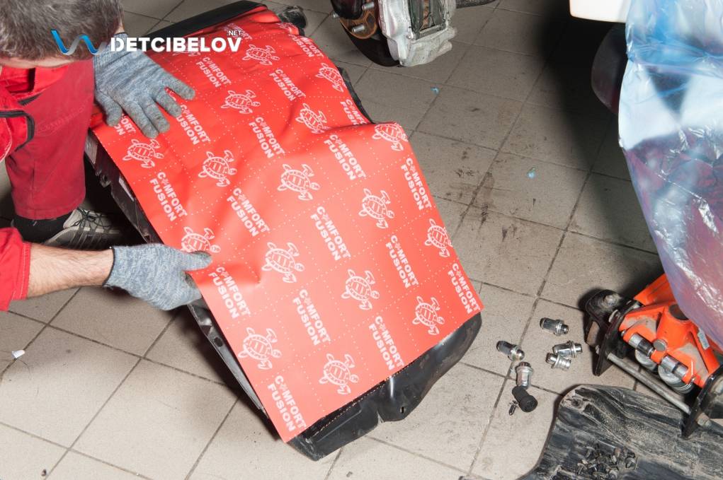 Наносим шумопоглощающий материал Comfort mat Fusion Red (3 мм).