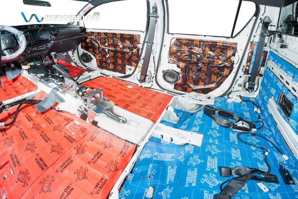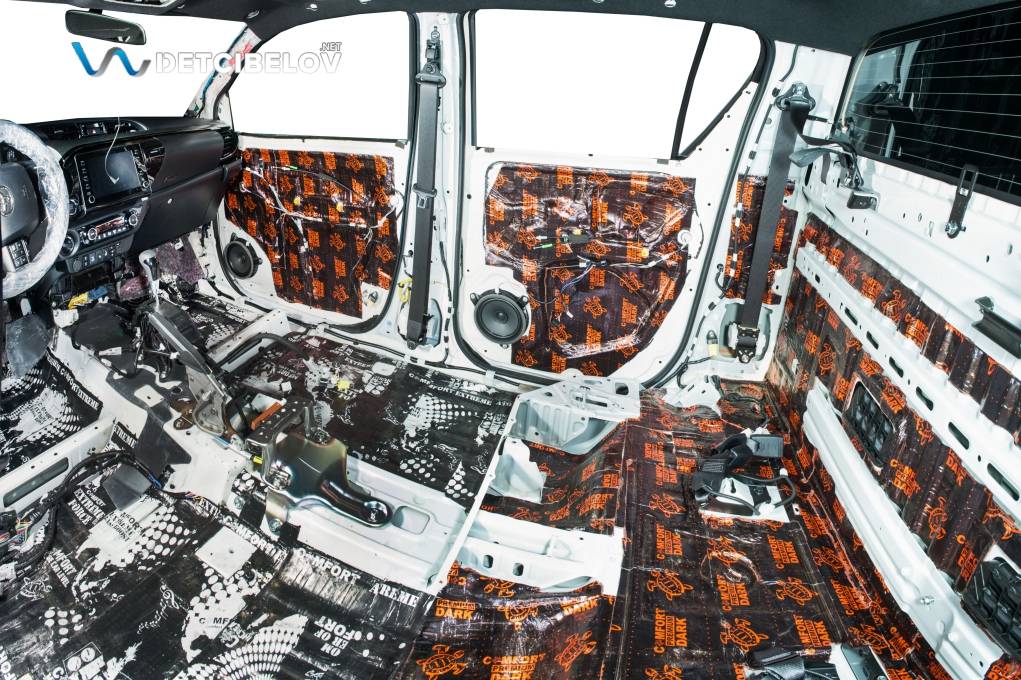 Сделаем тише Вашу Toyota Hilux VIII поколение в 3,78 раза за 16 часов с гарантией отсутствия скрипов и поломанных элементов салона.
