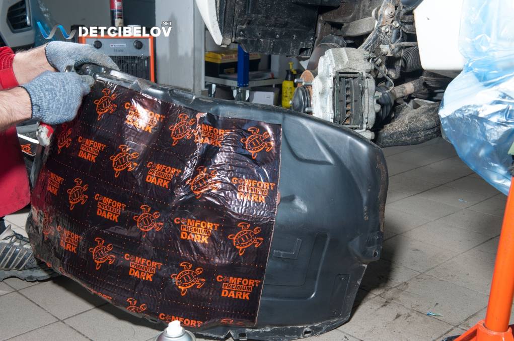 Шумоизоляция торпедо и колесных арок снаружи – за доплату.