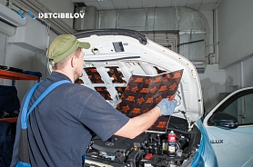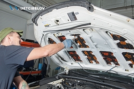 • Покрывают звукоизоляционными материалами различные части машины – от капота и дверей до колесных арок.