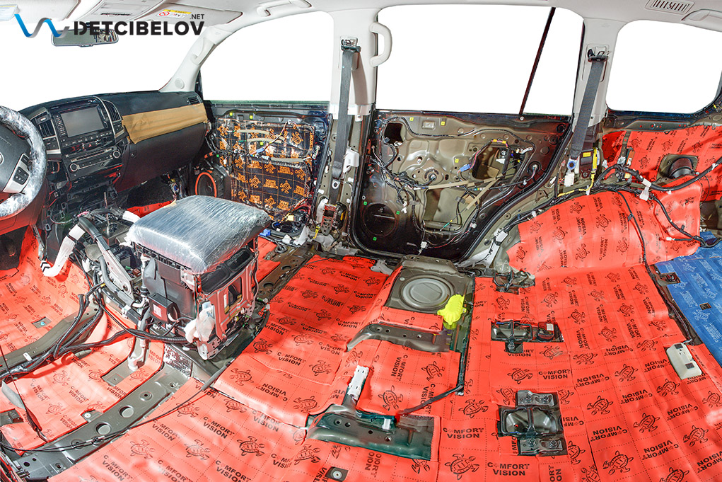 • Никаких компромиссов! Только топовые материалы последнего поколения от ТМ "Comfort mat" с максимальной эффективностью и максимальным количеством слоев. Также использование вибродемпфирующих материалов высокой жесткости с разогревом в печи и дополнительной напыляемой шумоизоляцией для колесных арок.