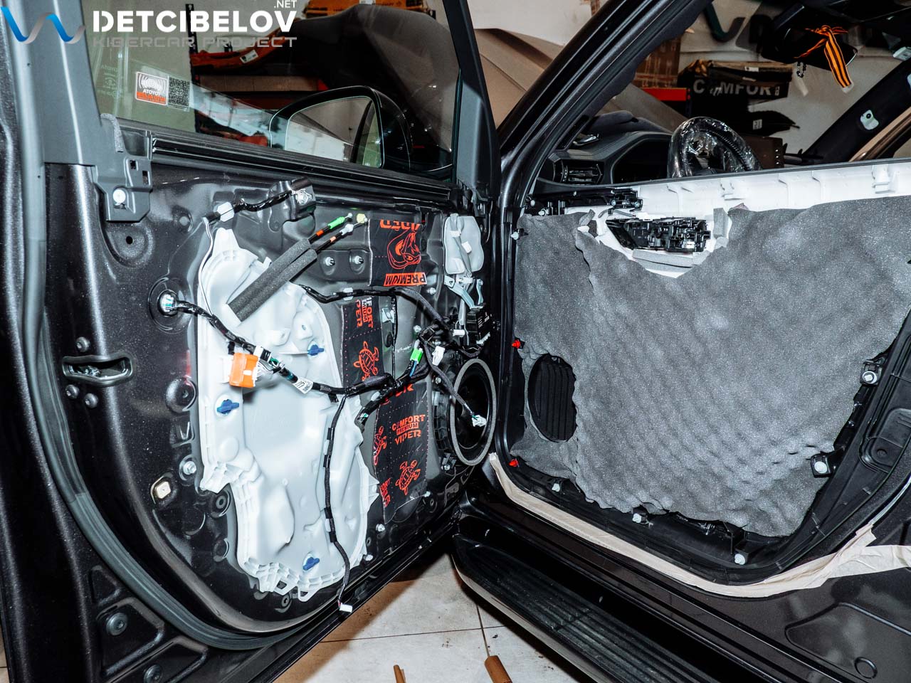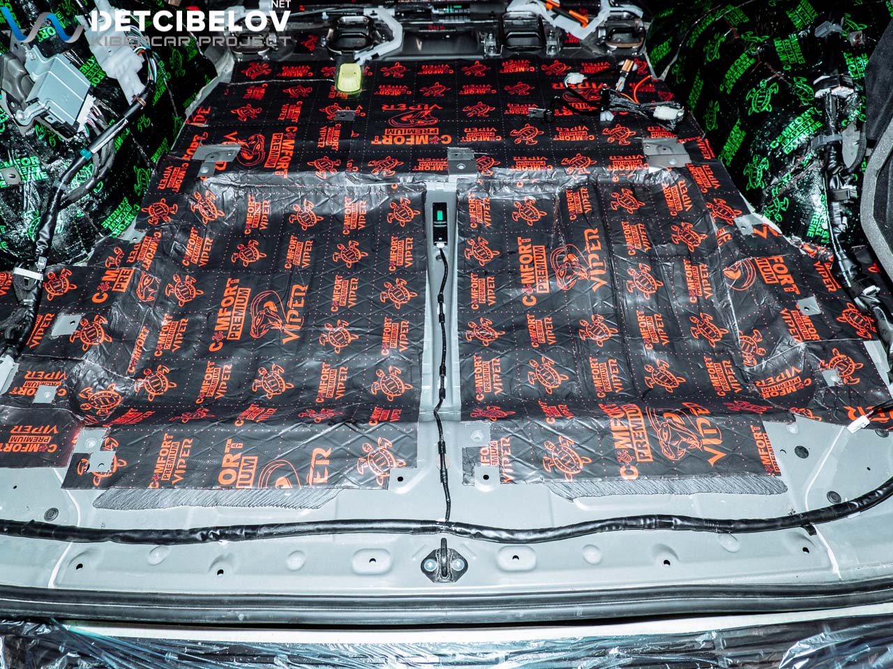 • Никаких компромиссов! Только топовые материалы последнего поколения от ТМ "Comfort mat" с максимальной эффективностью и максимальным количеством слоев. Также использование вибродемпфирующих материалов высокой жесткости с разогревом в печи и дополнительной напыляемой шумоизоляцией для колесных арок.