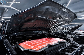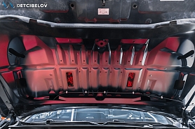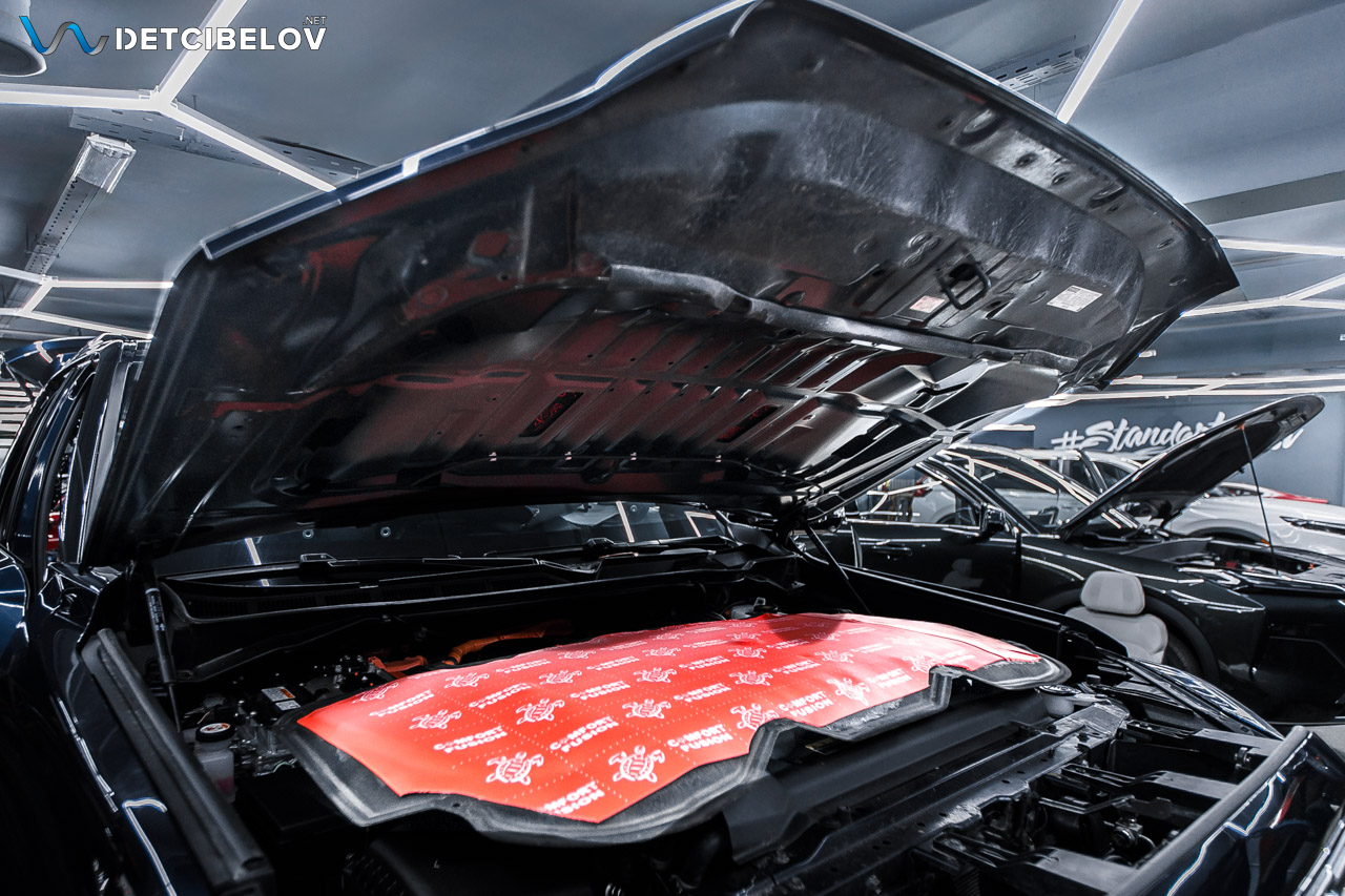 После шумоизоляции пола и зоны багажника переходим к работе над капотом и крышкой багажника.
