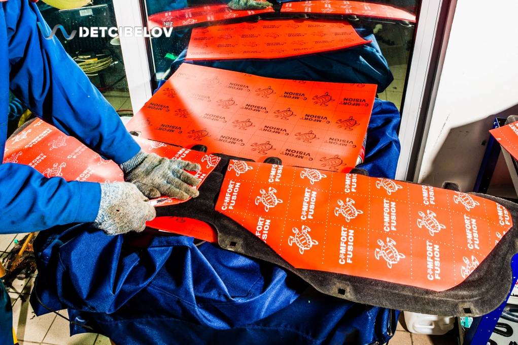 • Никаких компромиссов! Только топовые материалы последнего поколения от ТМ "Comfort mat" с максимальной эффективностью и максимальным количеством слоев. Также использование вибродемпфирующих материалов высокой жесткости с разогревом в печи и дополнительной напыляемой шумоизоляцией для колесных арок.