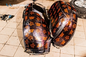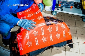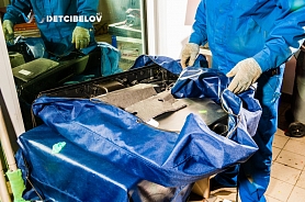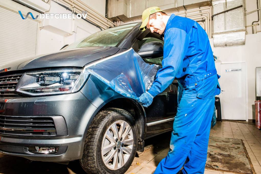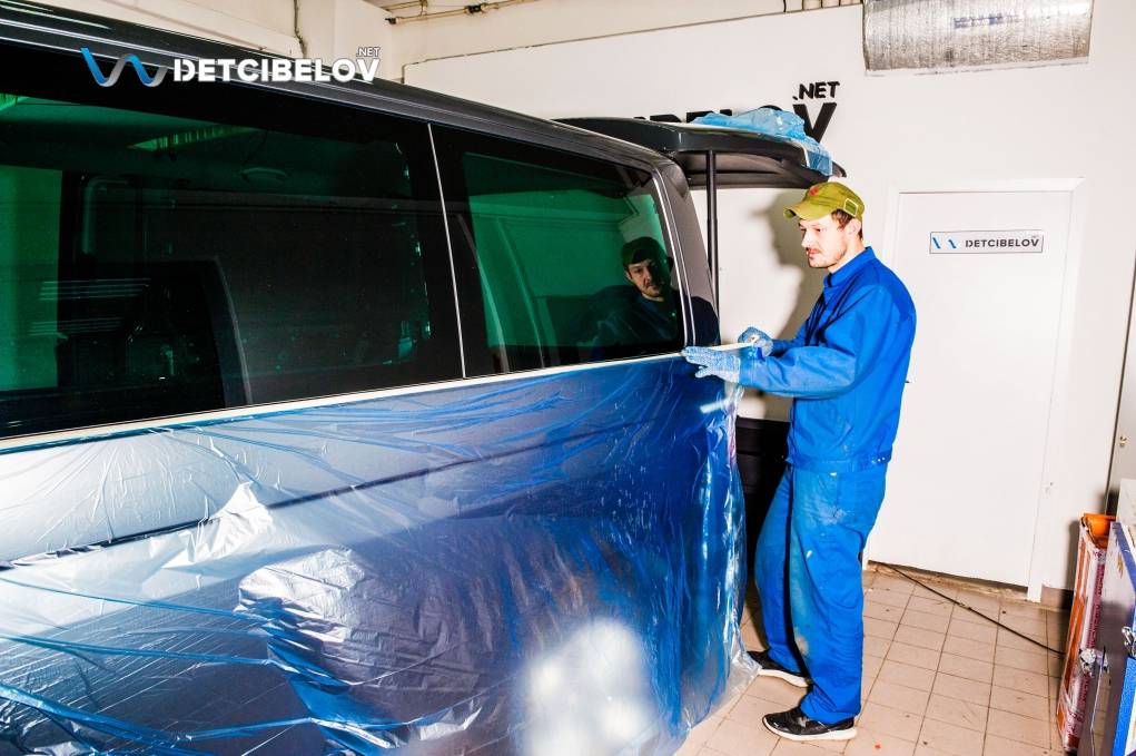 Автомобиль тоже проходит предварительную подготовку. Команда освобождает салон от всего лишнего, демонтирует сиденья и дополнительное оборудование. Внешние элементы кузова защищаем пленкой, арки дверей и пороги – скотчем.