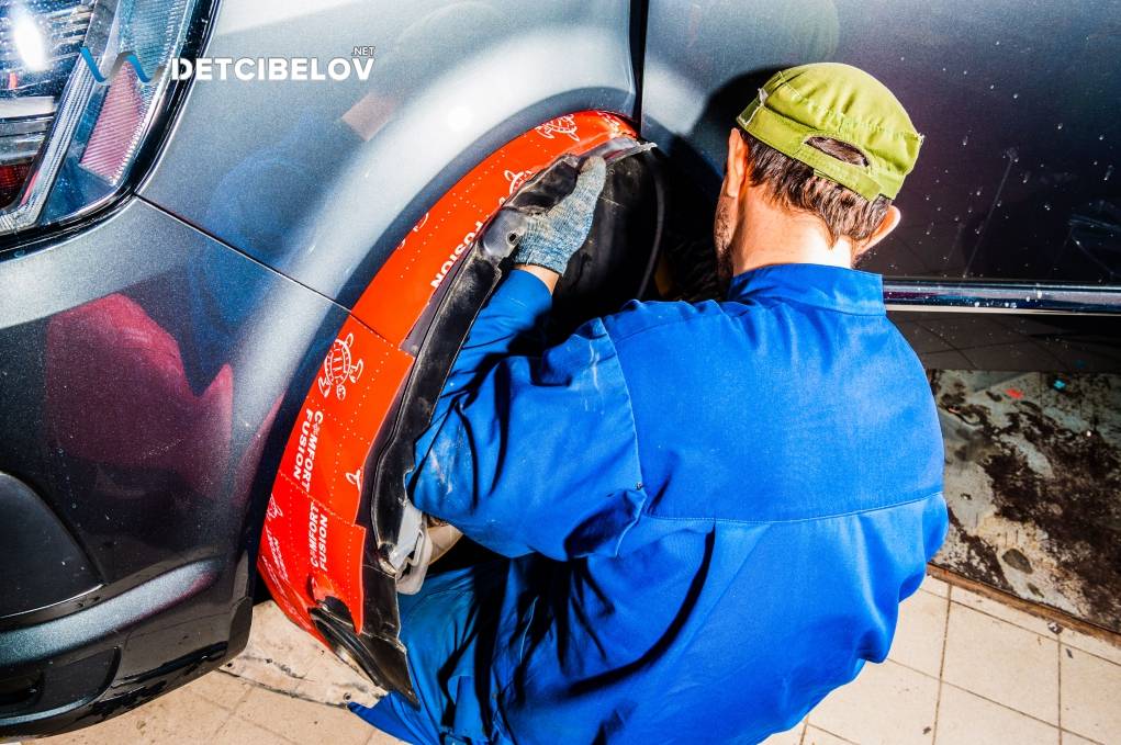 На заключительном этапе переходим к обесшумливанию колесных арок и подкрылков.