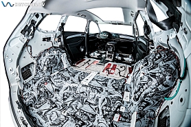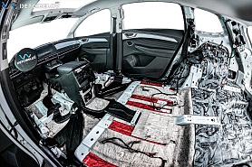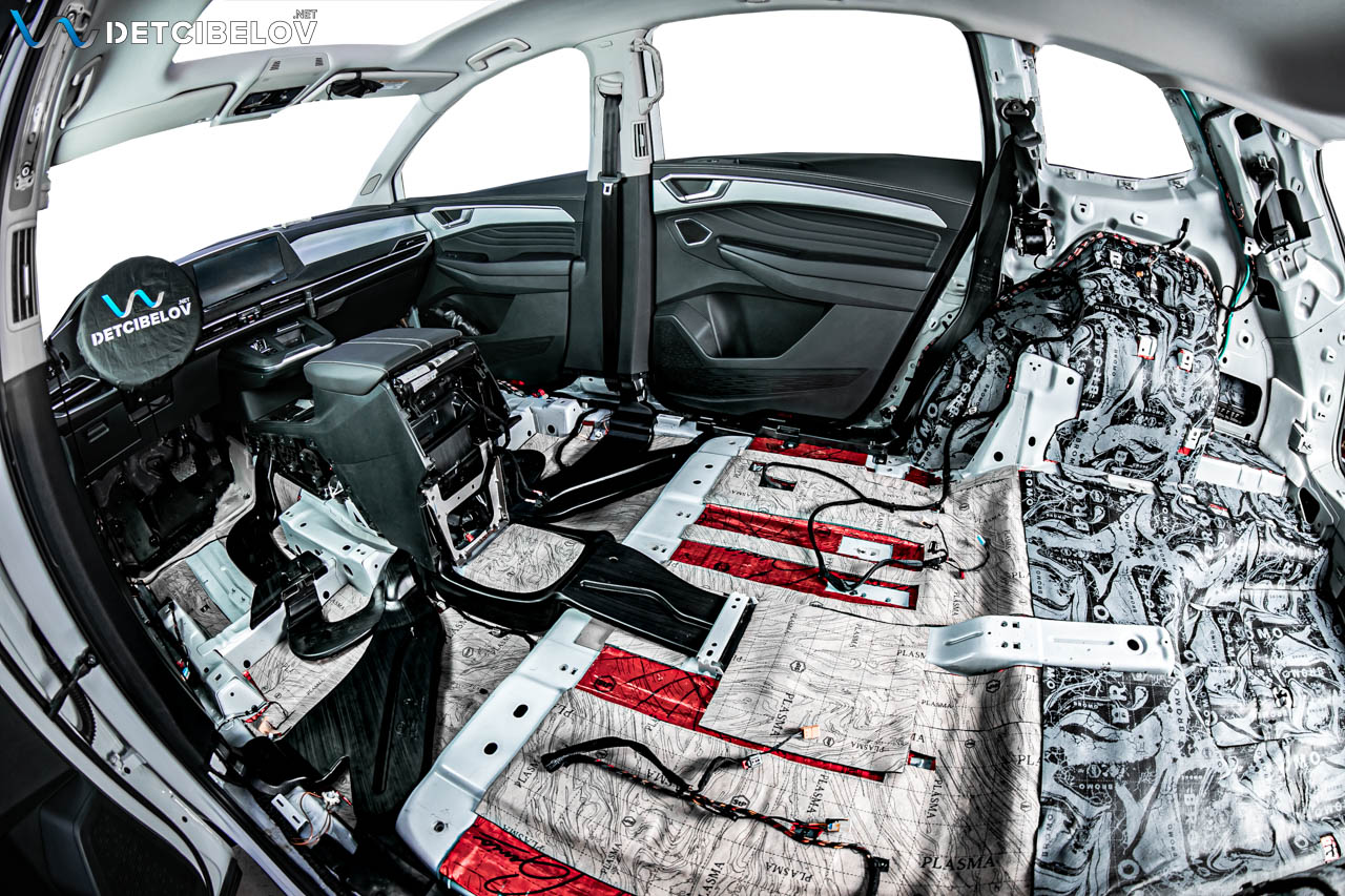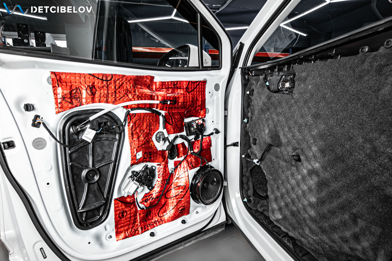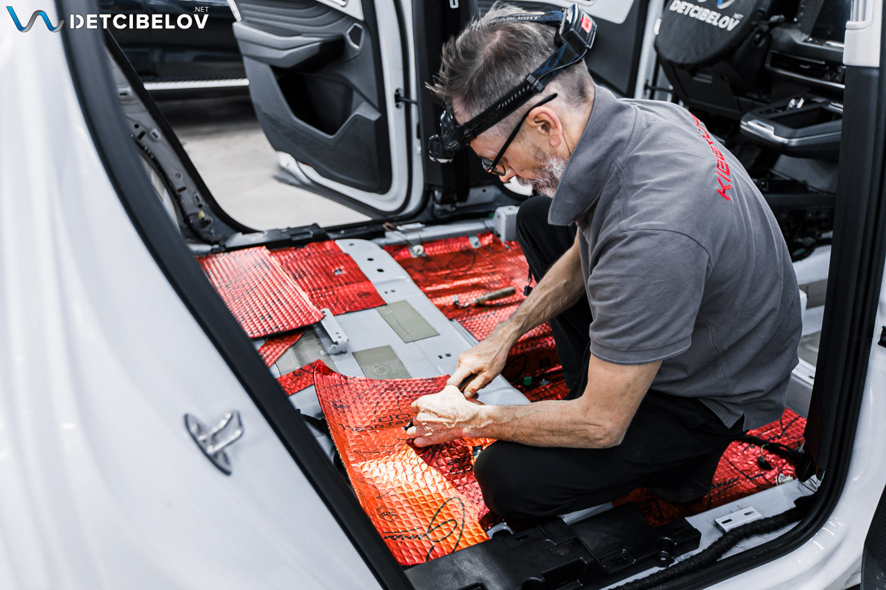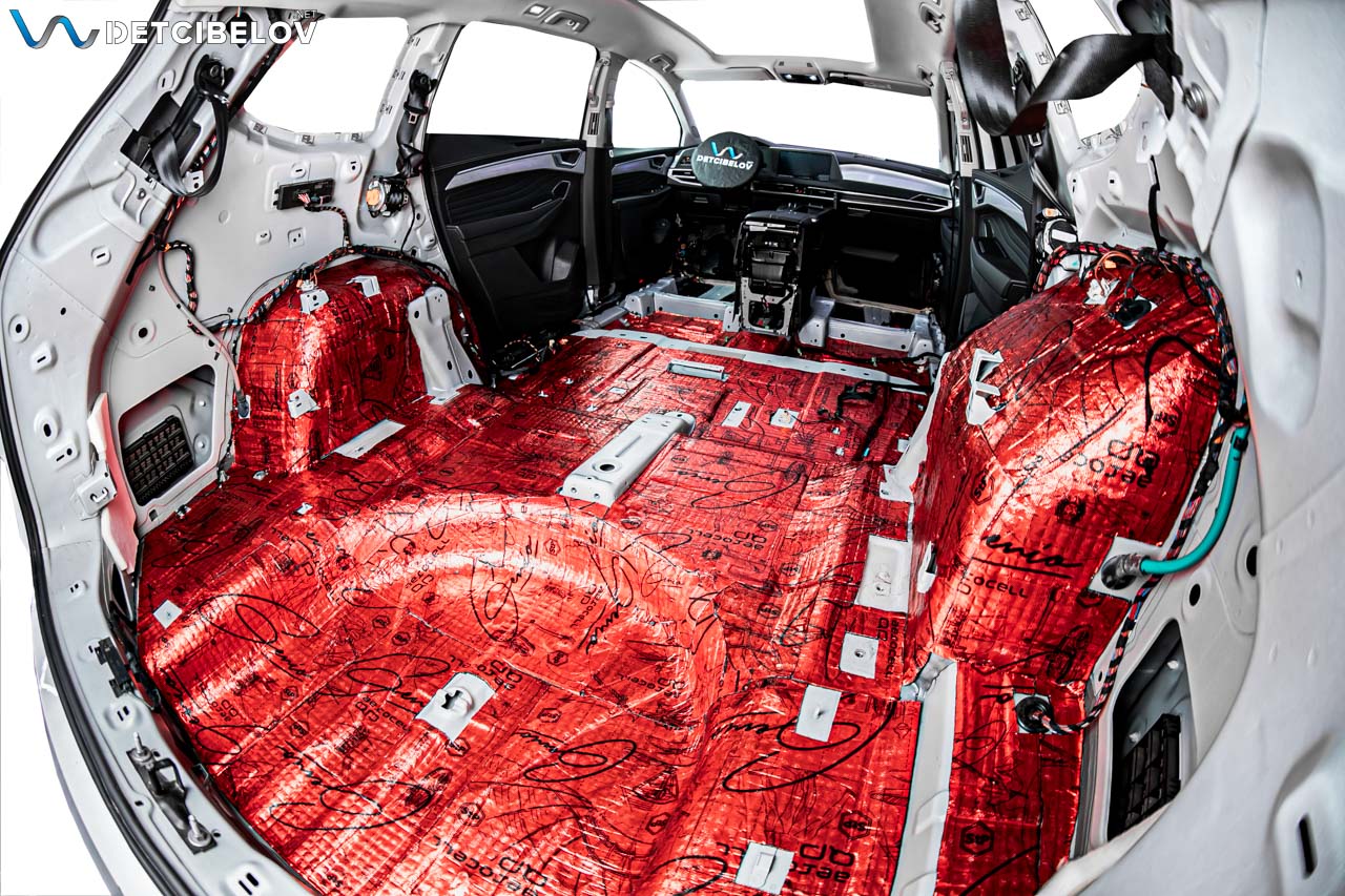 • Никаких компромиссов! Только топовые материалы последнего поколения от ТМ "Comfort mat" с максимальной эффективностью и максимальным количеством слоев. Также использование вибродемпфирующих материалов высокой жесткости с разогревом в печи и дополнительной напыляемой шумоизоляцией для колесных арок.
