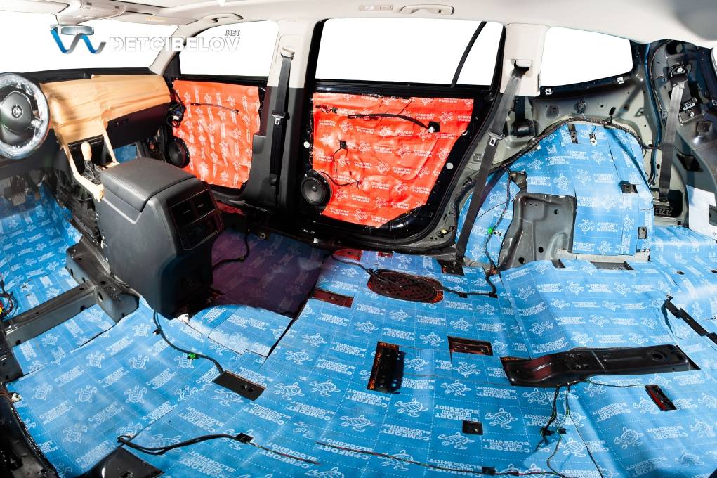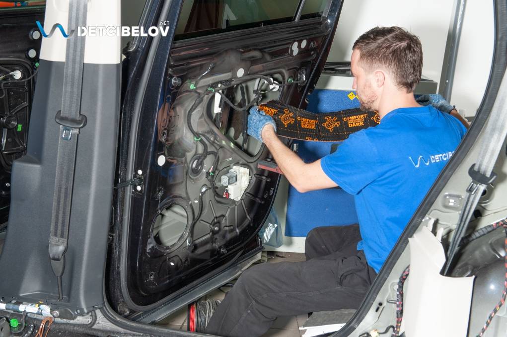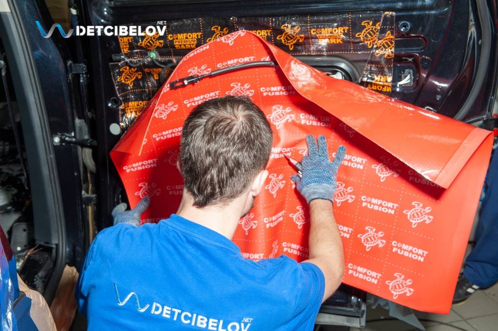 • Никаких компромиссов! Только топовые материалы последнего поколения от ТМ "Comfort mat" с максимальной эффективностью и максимальным количеством слоев. Также использование вибродемпфирующих материалов высокой жесткости с разогревом в печи и дополнительной напыляемой шумоизоляцией для колесных арок.