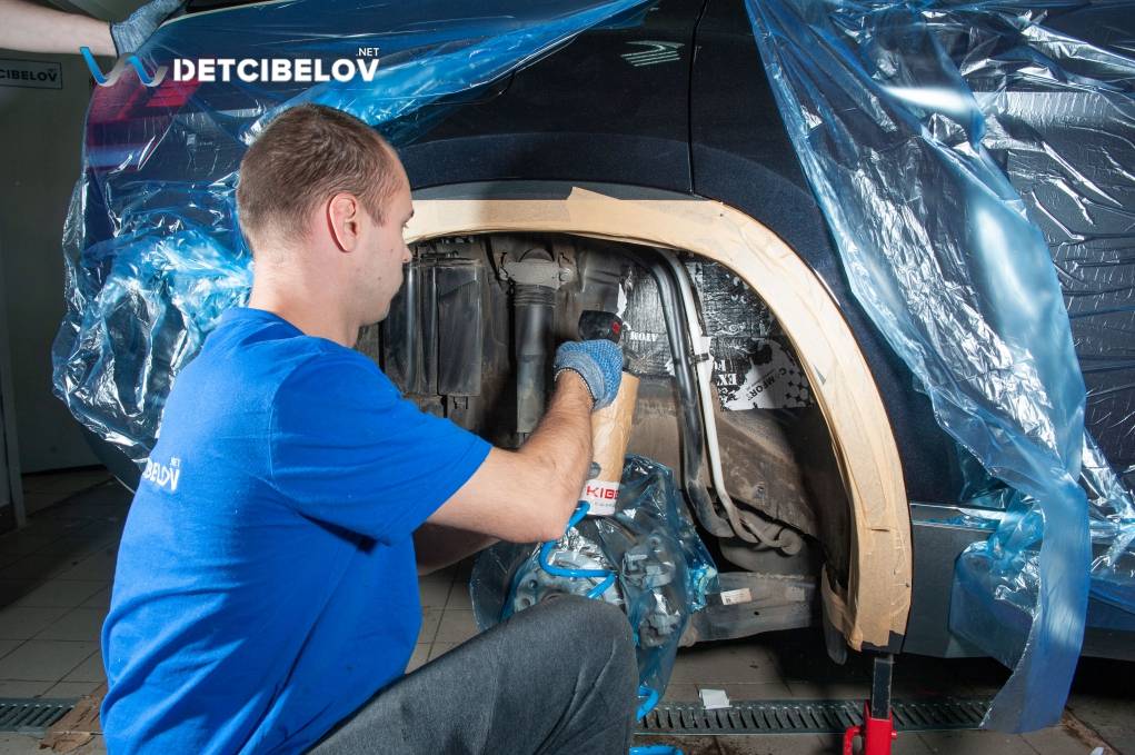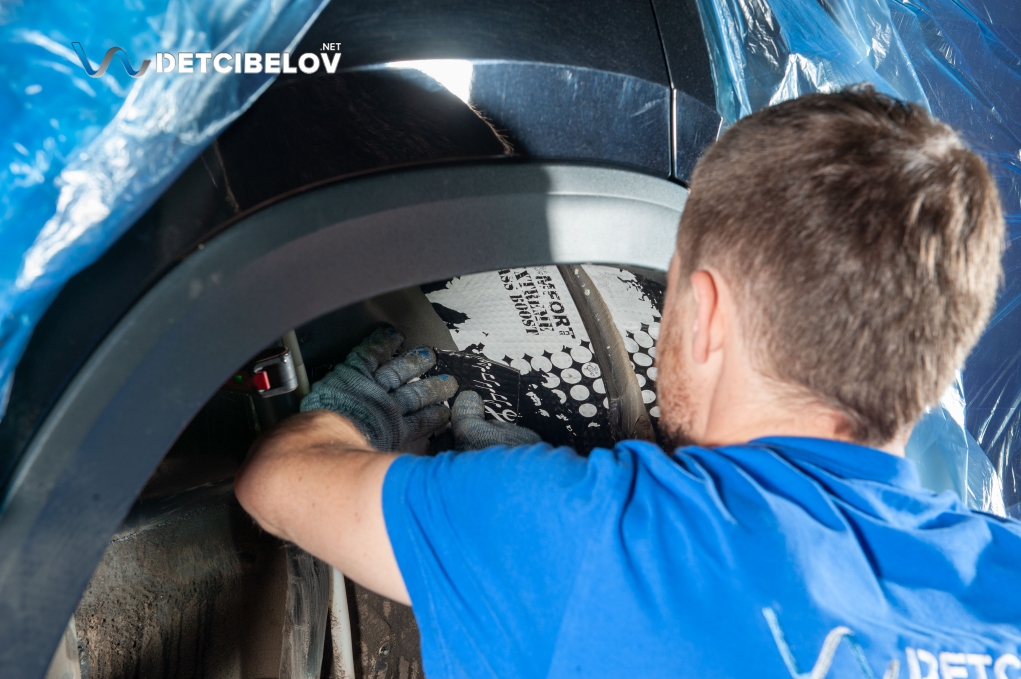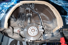 Шумоизоляция торпедо и колесных арок снаружи – за доплату.