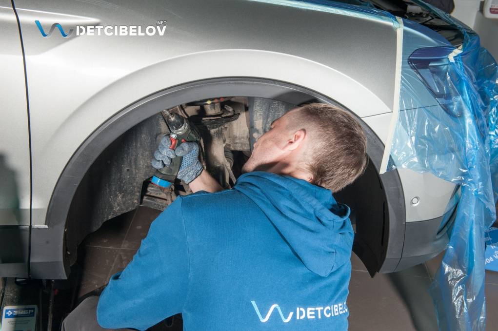 Шумоизоляция торпедо и колесных арок снаружи – за доплату.