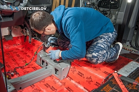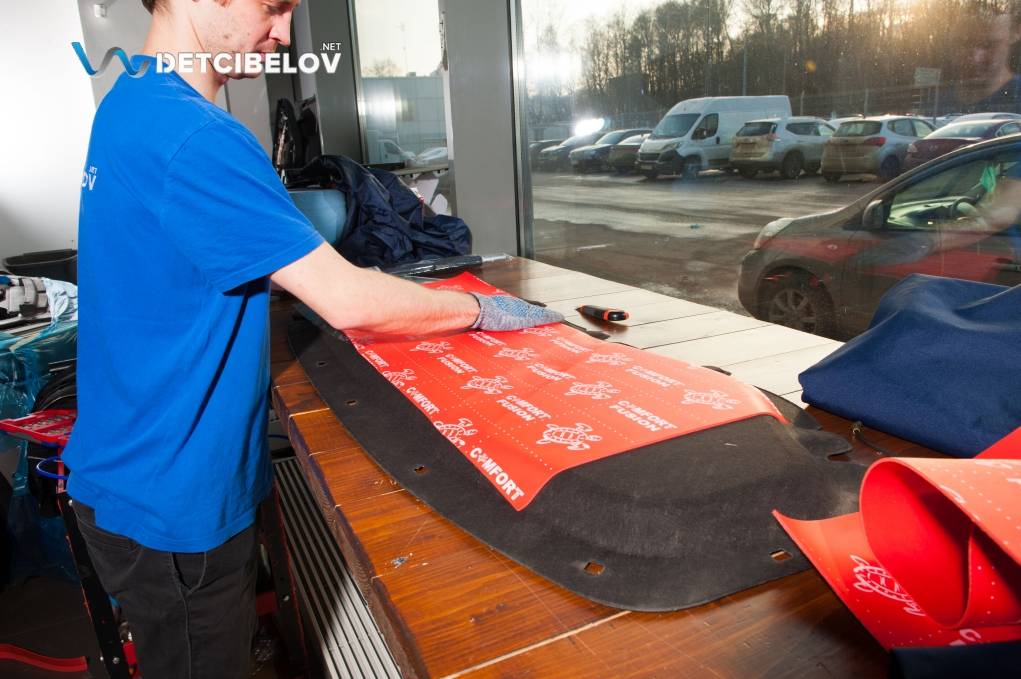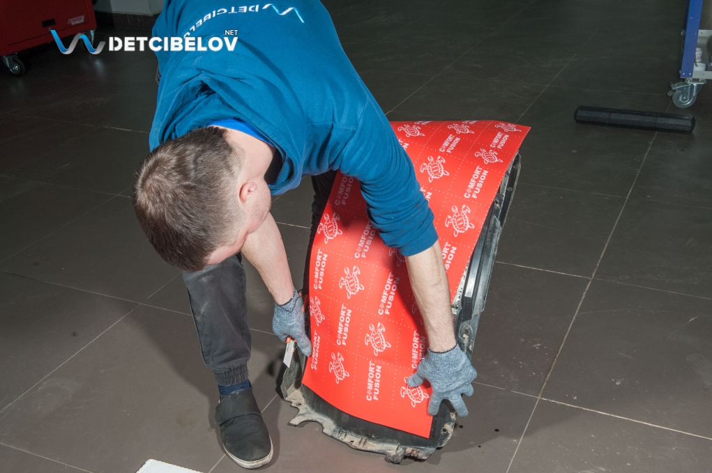 Вторым слоем – полимерным материалом Comfort mat Fusion Red (3 мм) для звукоизоляции и шумопоглощения. После этого автомобиль полностью собираем, убираем мусор, проверяем работоспособность основных узлов. Результат можно демонстрировать владельцу.