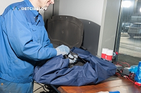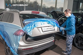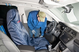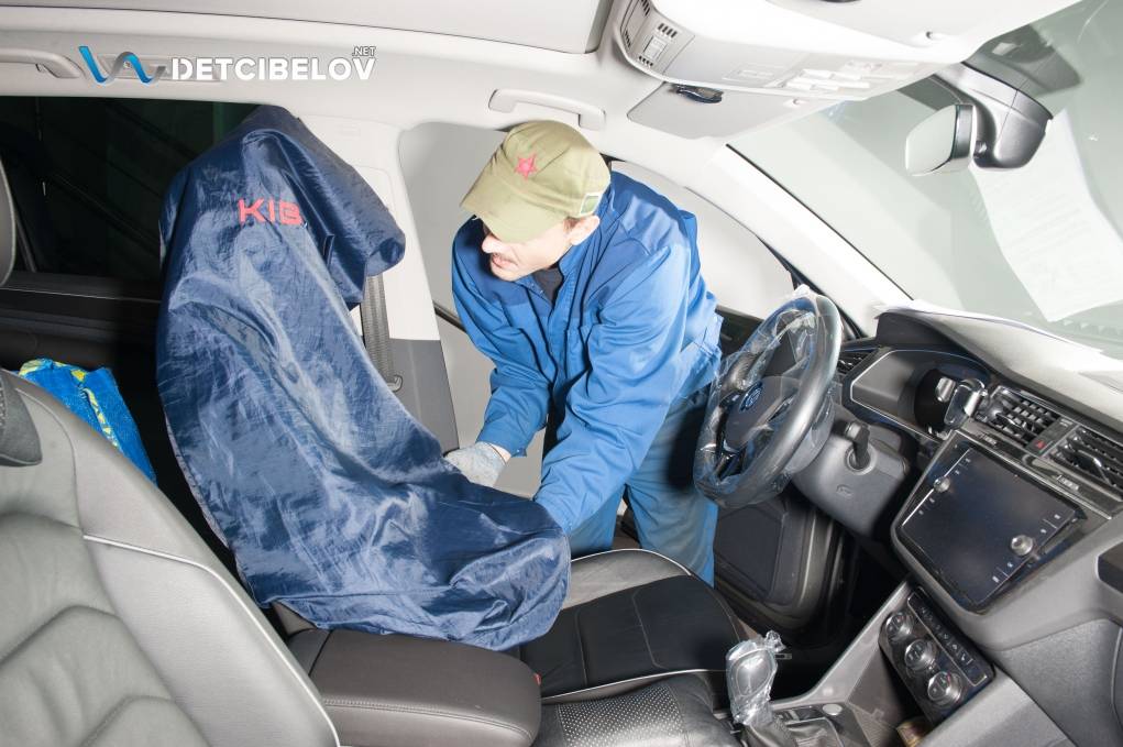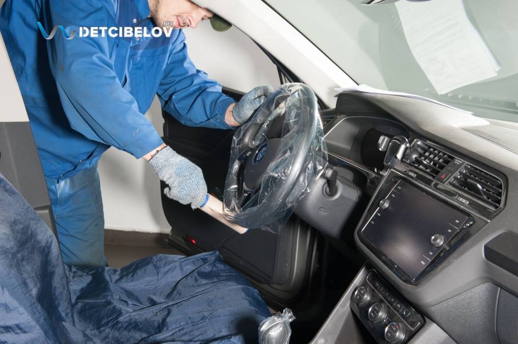 Не стоит переживать и о состоянии автомобиля. Для защиты дверных арок от царапин используется скотч, некрупные пластиковые детали укутываем в стрейч-пленку, руль и элементы интерьера, которые остаются в салоне, защищаем чехлами.